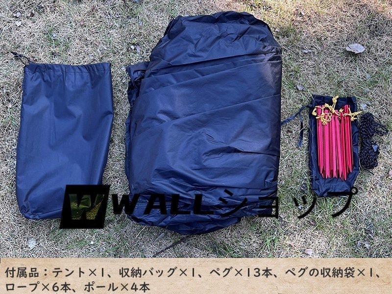 セット内容:テント本体、ペグ、防風ロープ、ポール*4、マット、収納袋