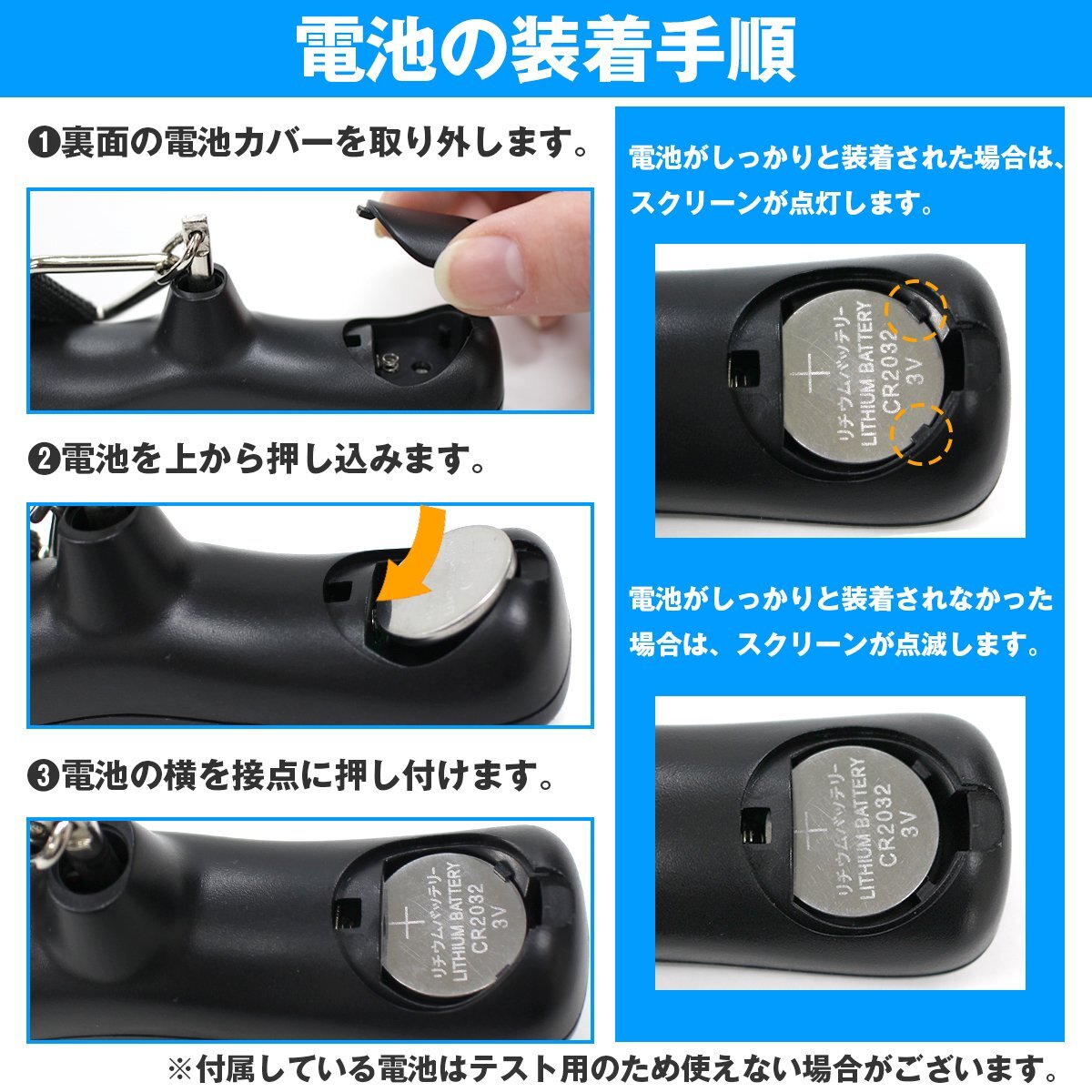 電源:CR2032リチウム電池(付属している電池はテスト用のため使えない場合がございます。)