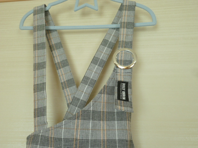 ★美品★*。o♪【DOLLY RIBBON ドーリーリボン】オーバーオール オールインワン チェック柄グレー ★*サイズ140★*。o♪