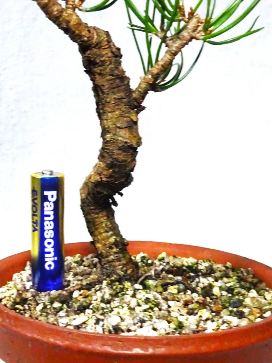 大きさは樹高約20cm、幅、幹回りは画像で確認してください、缶コーヒー、単3の乾電池と比較してください。