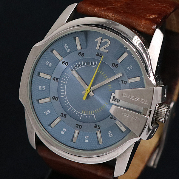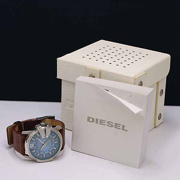 1円 箱付 ディーゼル QZ アイスブルー文字盤 DZ-1399 メンズ腕時計 2853100 11ERY KMR