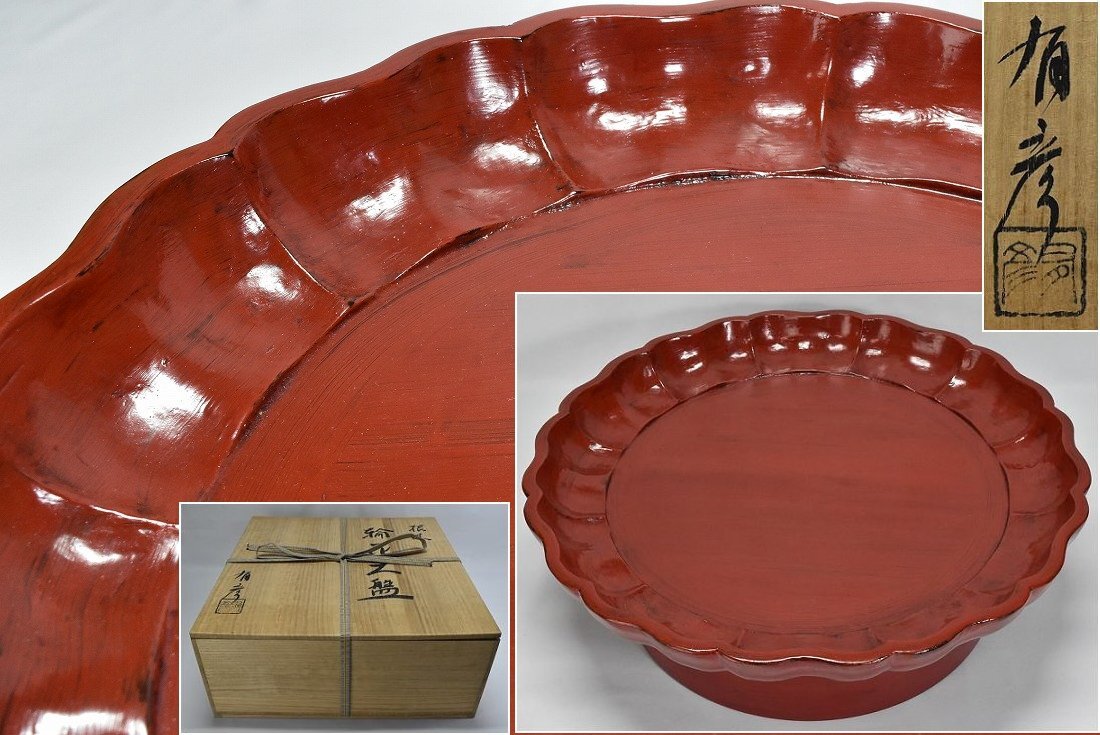 根来【夏目有彦】輪花大盤 鉢 直径45cm 漆芸 漆器 共箱 K197 |