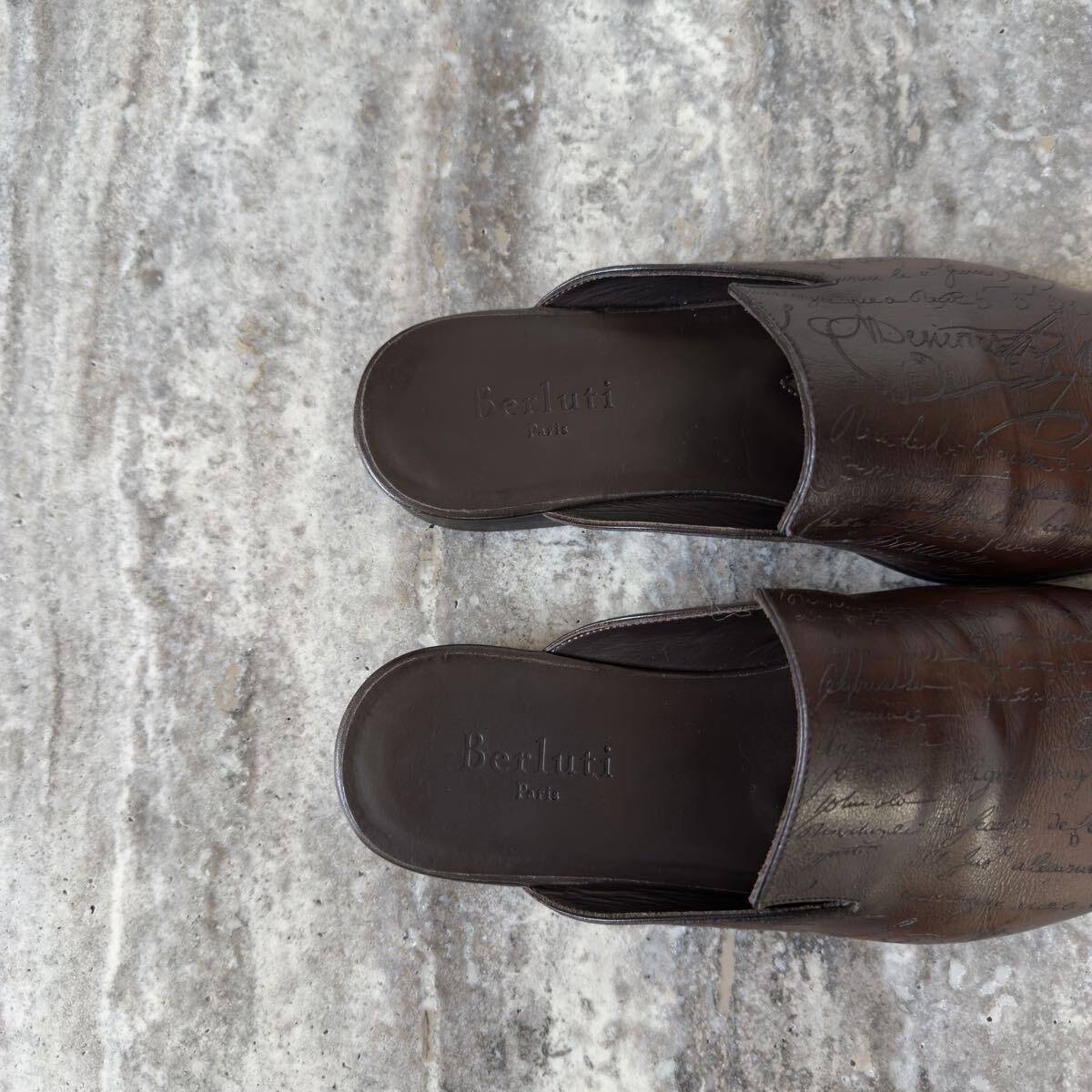 世界中のベルルッティの試着室に必ず置いてある定番 サイラス オマーン カリグラフィースクリットレザースリッポンになります。
