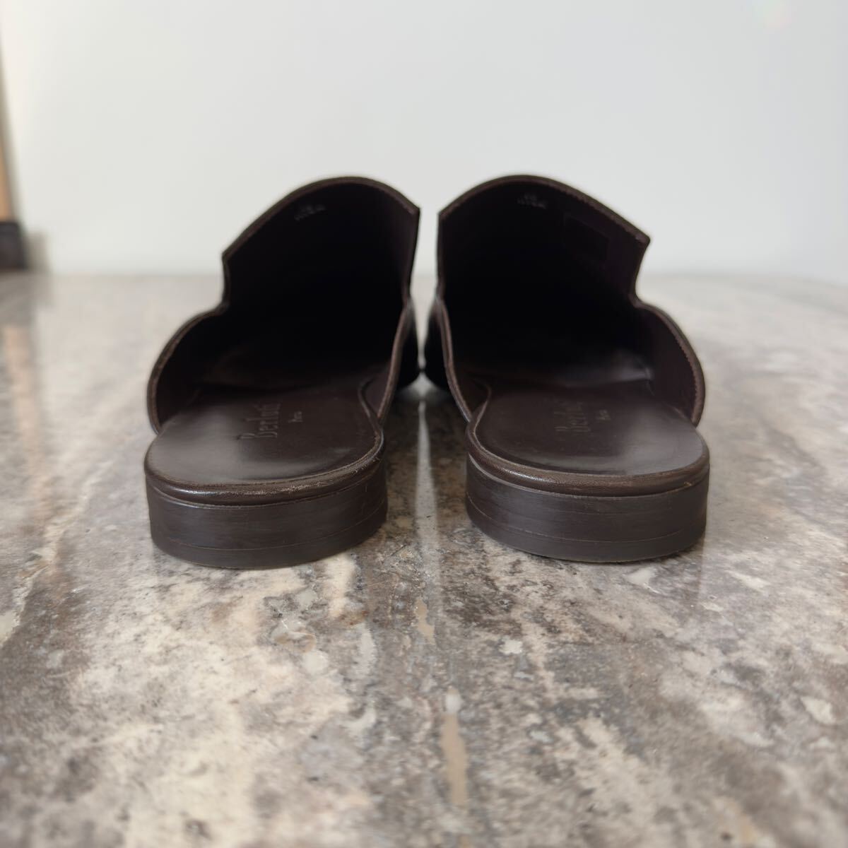 こちらはミュールでありながらしっかりとホールド感があり、脱ぎ履きがしやすくワードローブ内に1足あると非常に重宝する名作サマーシューズです。