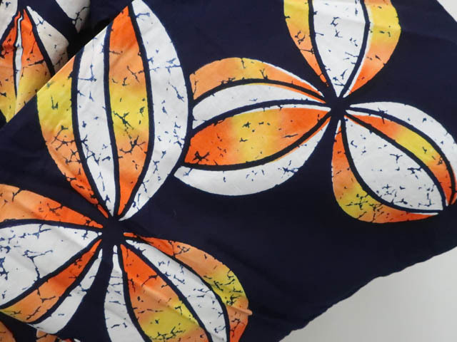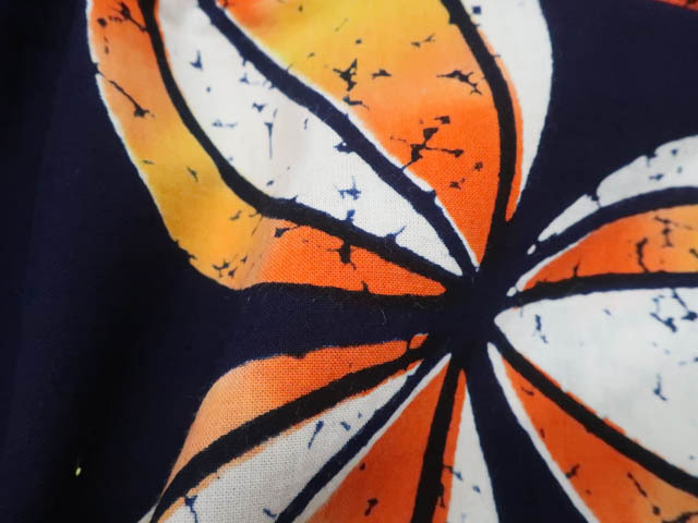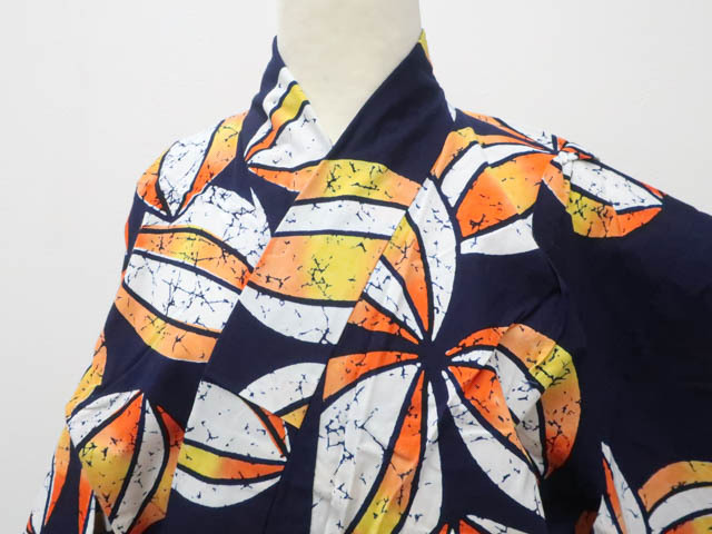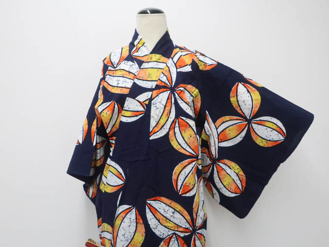 リサイクル商品のため、右背に大きなしみがございます。 約5cm肩上げがございますが着用可能なお品です。 地色は紺です。 1枚目の画像が近いお色かと思われます。 素材は綿です。 |