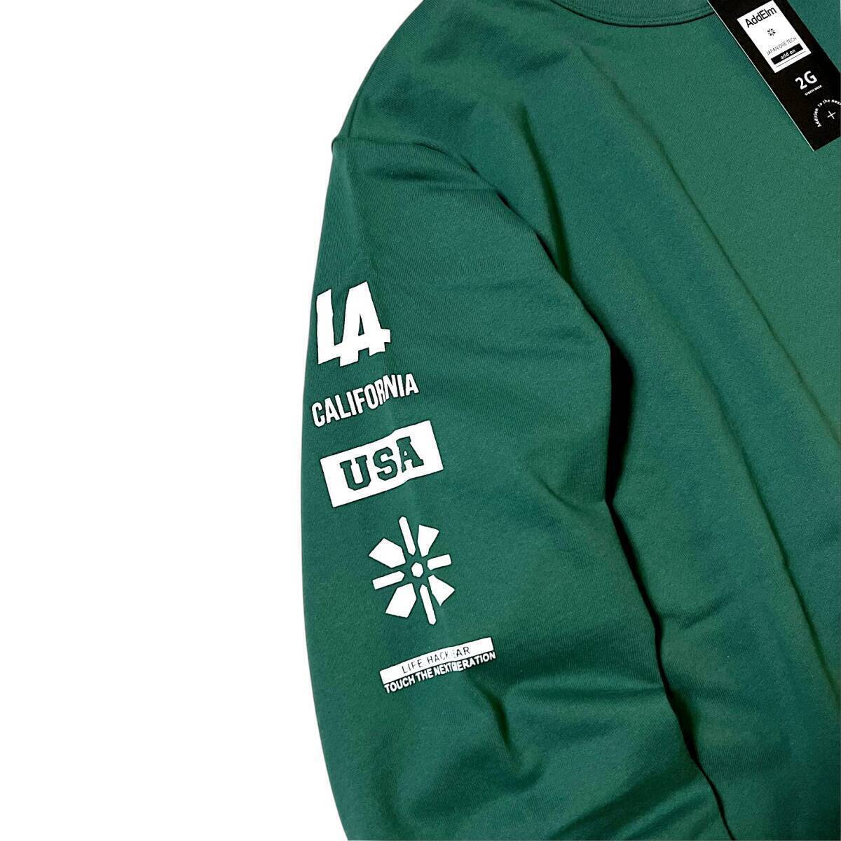 タイトル 新品 AddElm アドエルム 定1.6万 日本製 Made in japan 休養&睡眠の質向上 袖プリント リラックスウェア 長袖 スウェット トレーナー プルオーバー リカバリーウェア M メンズ ユニセックス GOLF スポーツ 部屋着 ルームウェア 普段使い タウンユース グリーン系