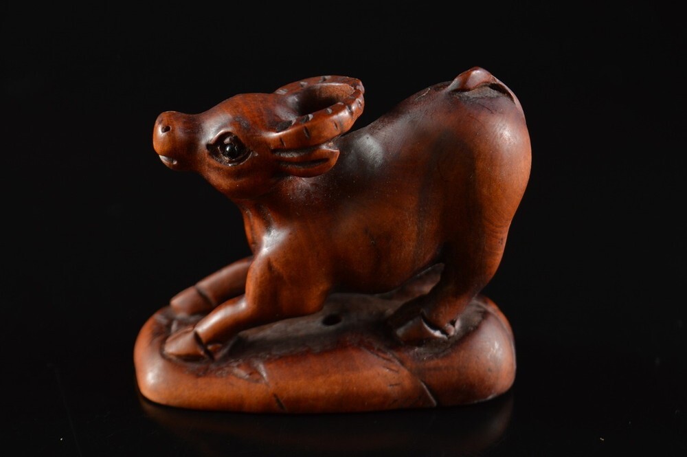 | 商品名 | 【雲】某収集家買取品 木製 牛根付 在銘 古美術品(彫刻提げ物) N5577 |
