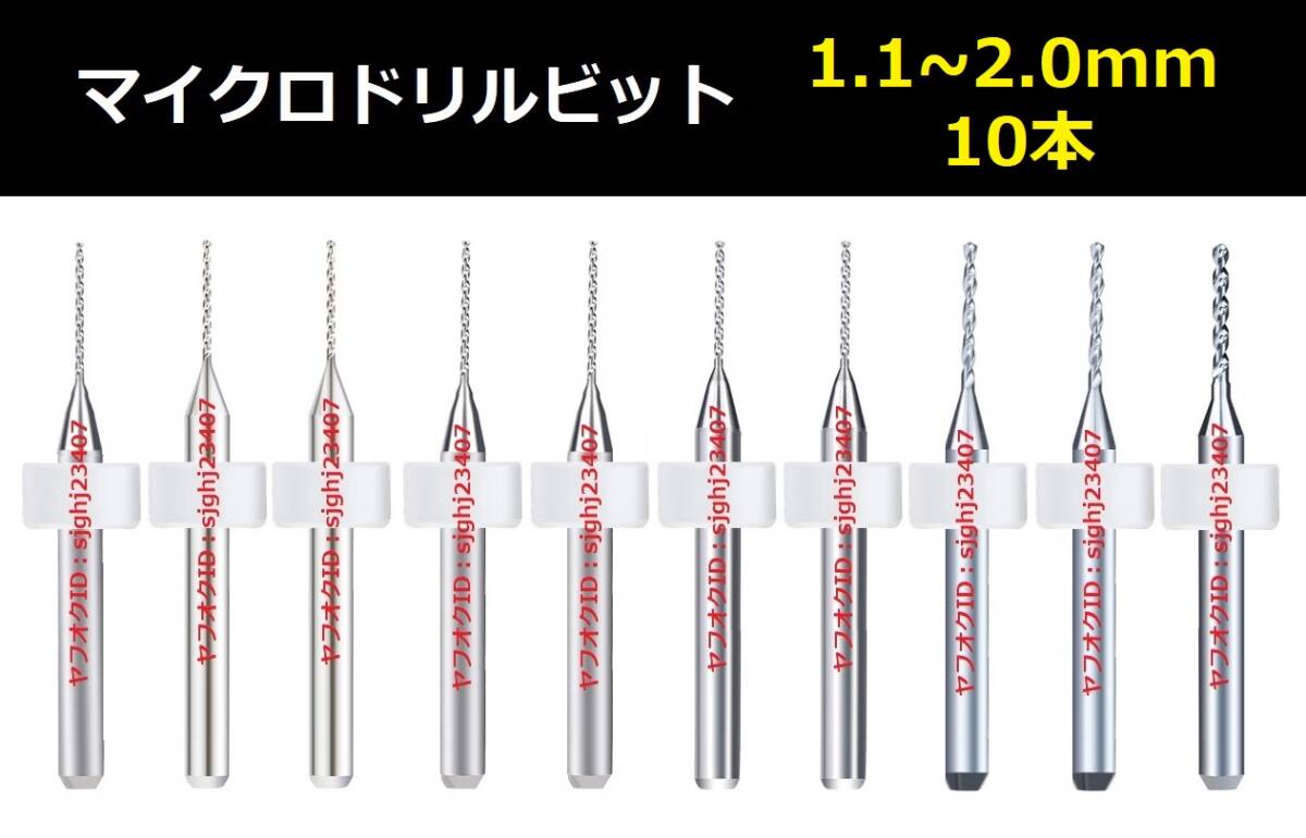 ・ドリルの刃径: 1 .1 mm 1 .2 mm 1 .3 mm 1 .4 mm 1 .5 mm 1 .6 mm 1 .7 mm 1 .8 mm 1 .9 mm 2 .0 mm 各 1 本計 1 0 本 セット