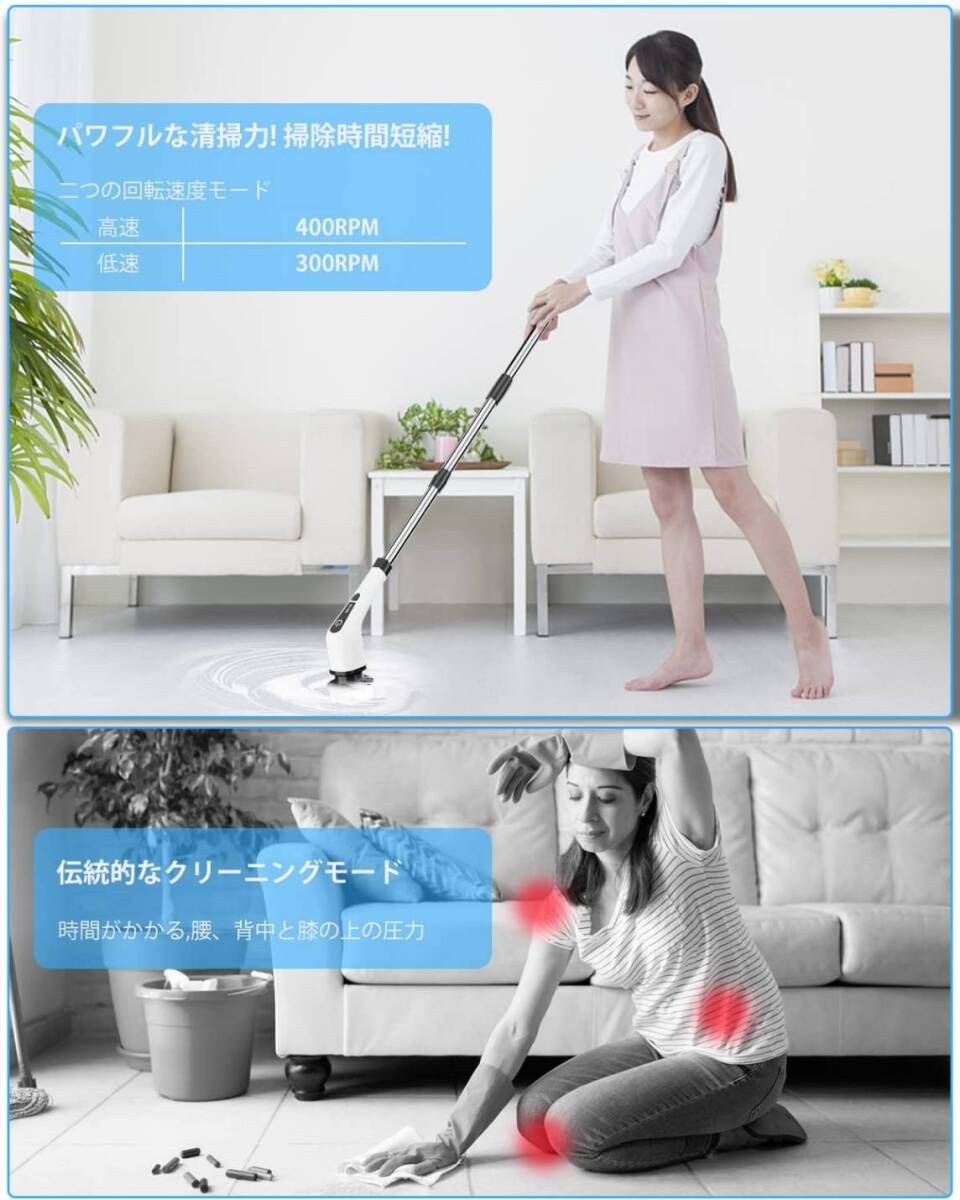 コードレス電動お掃除ブラシ 伸縮タイプ ヘッド3種類対応