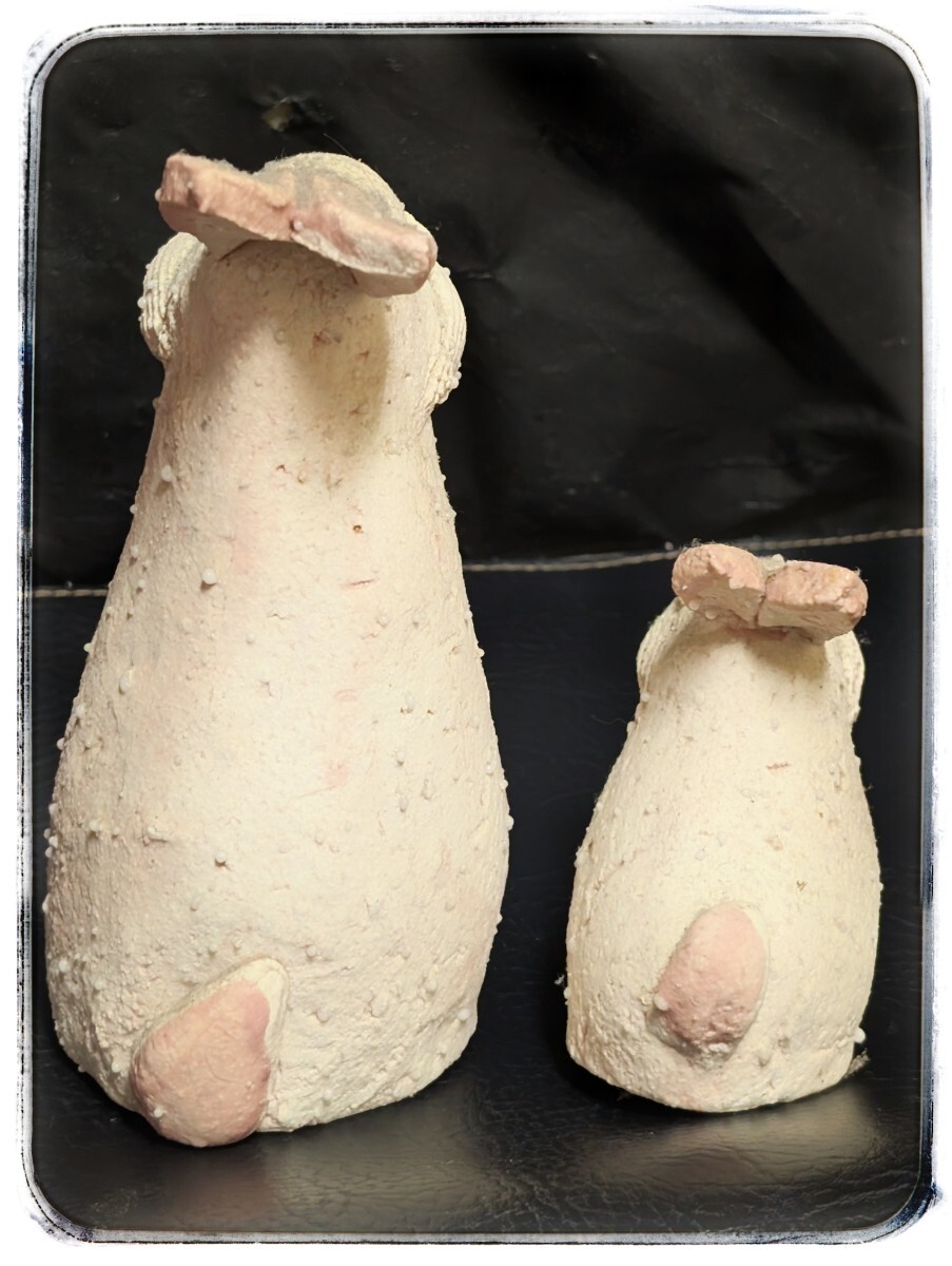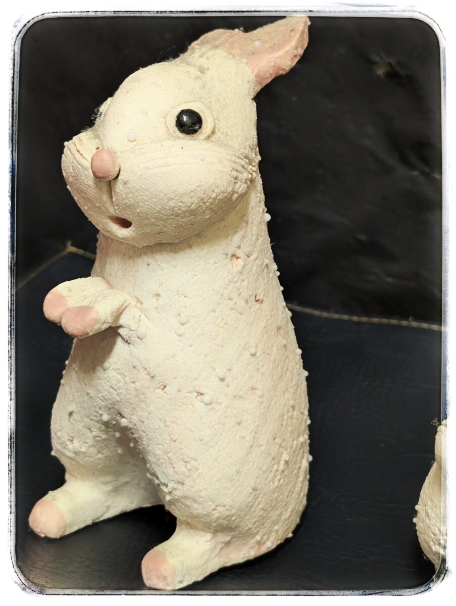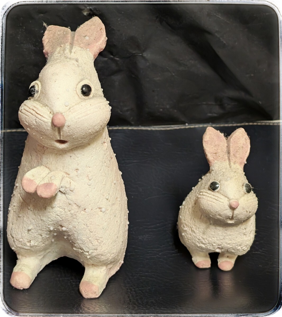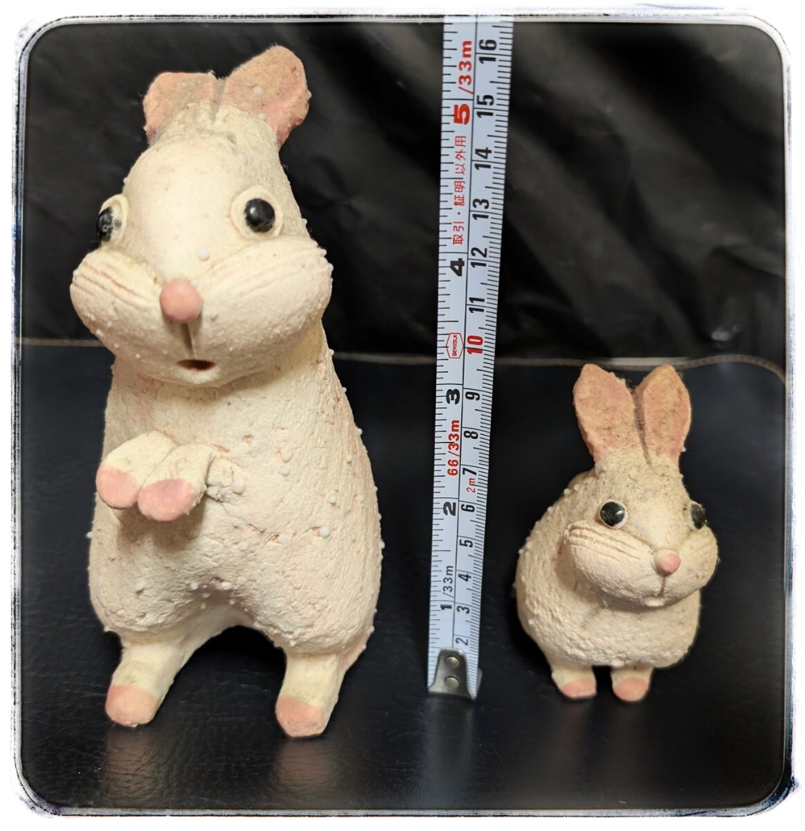 【昭和 ハンドメイド】一点物 ざらざら陶器の置物愛嬌たっぷりアニマル オーナメント ウサギの親子