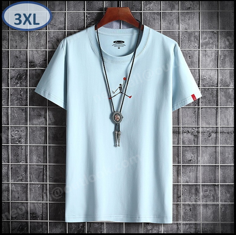 夏にピッタリ ☆ 丸首 半袖 Tシャツ【094】 ブルー 3XLサイズ トップス シャツ シンプル イラスト プリント 春夏