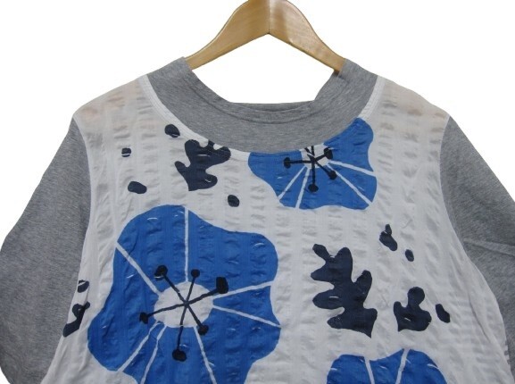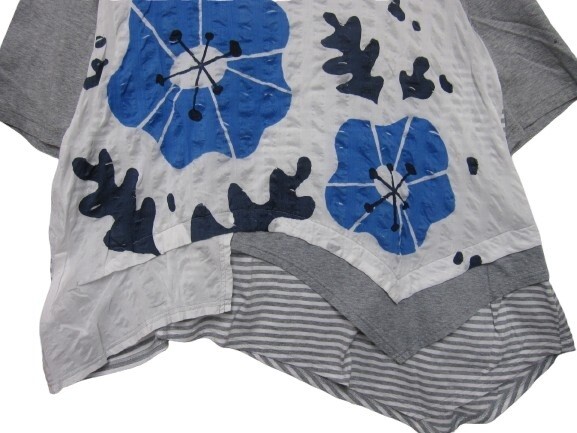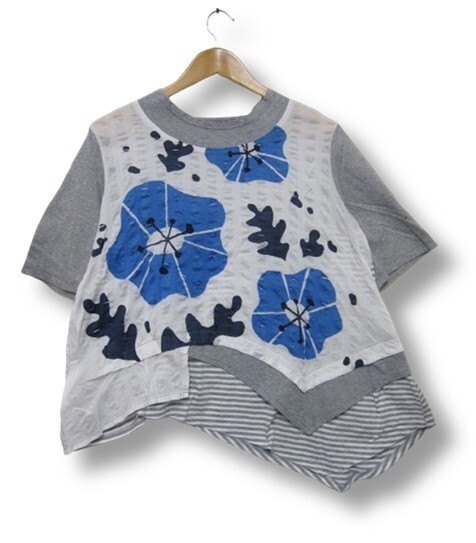 【未使用】【日本製】慈雨 ジウ センソユニコ 半袖 カットソー トップス アシンメトリー 和柄 白グレー水色 Lサイズ40■L29536SSA26-50-3