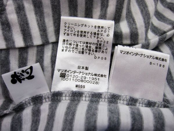 【未使用】【日本製】慈雨 ジウ JIU センソユニコ 半袖 カットソー トップス 切替 アシンメトリー 和柄 ボーダー 白グレー水色 Lサイズ40■管理番号L29536SSA26-251122-50-3(198)