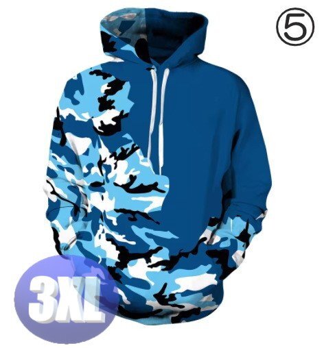 フード付き 迷彩パーカー カモフラ ブルー 3XL トレーナー アウター 防寒 n721