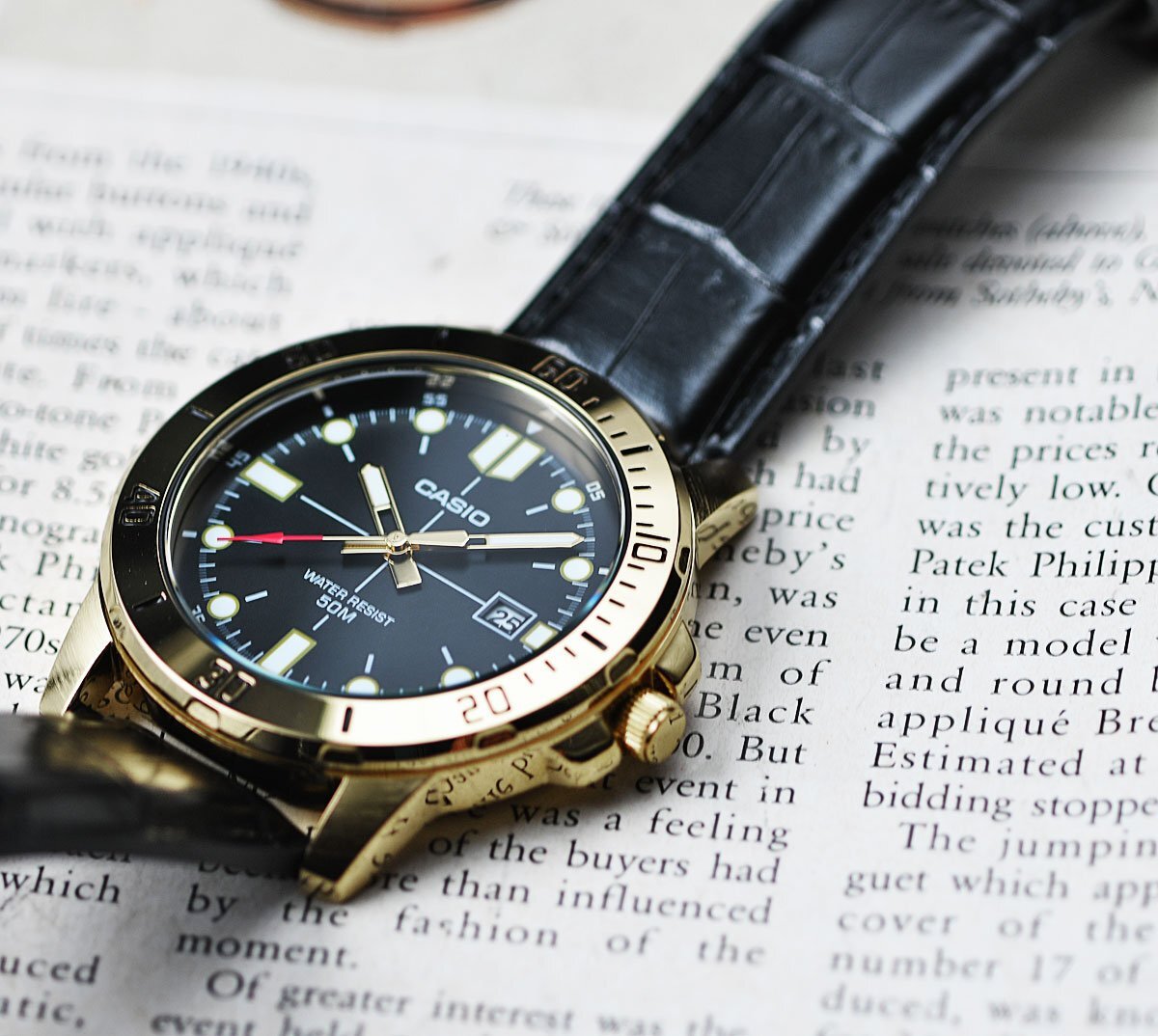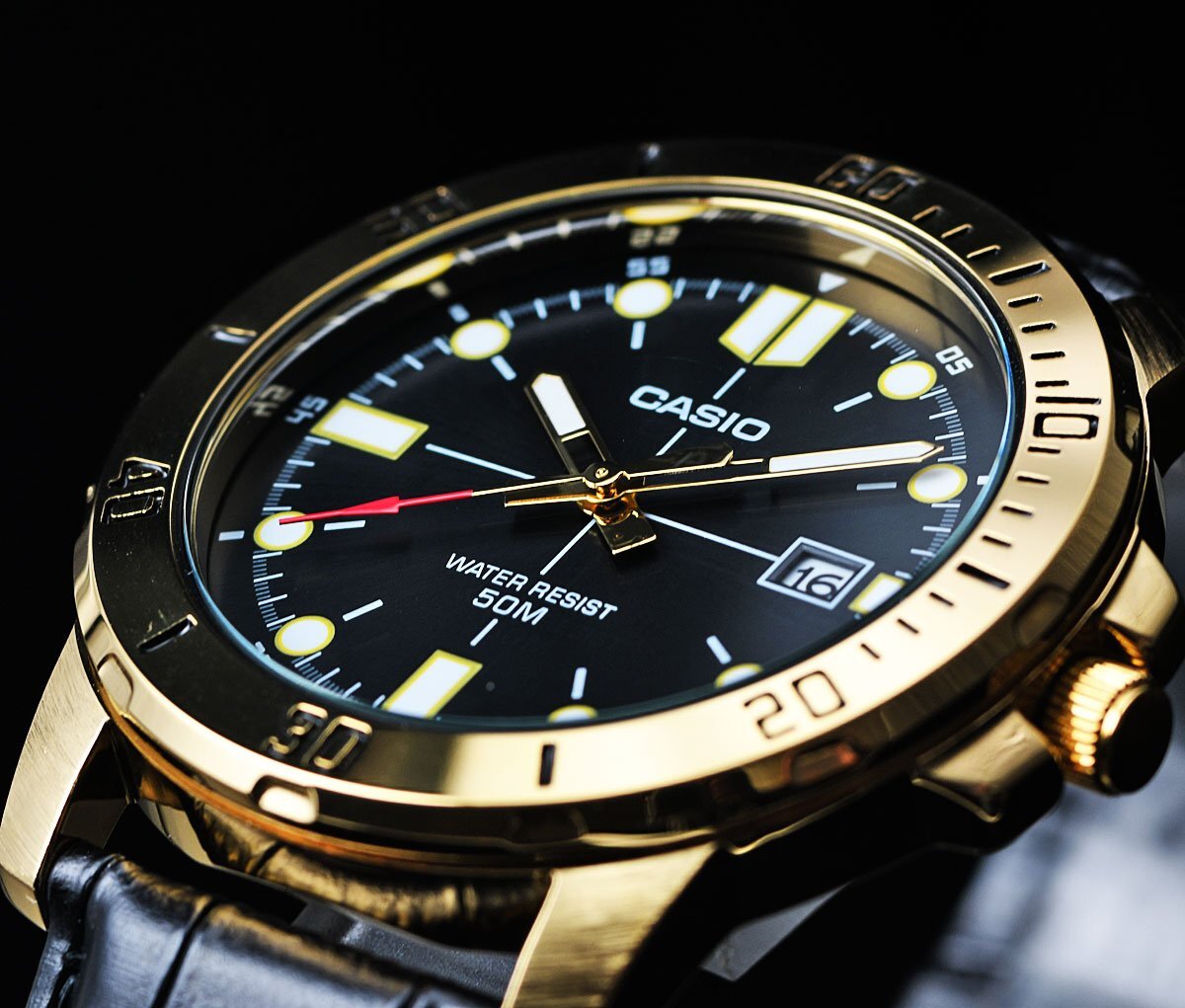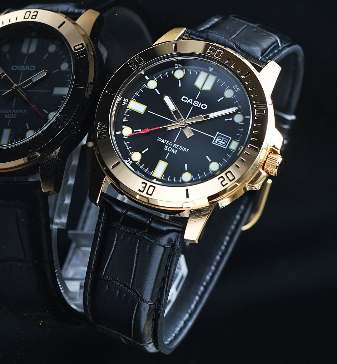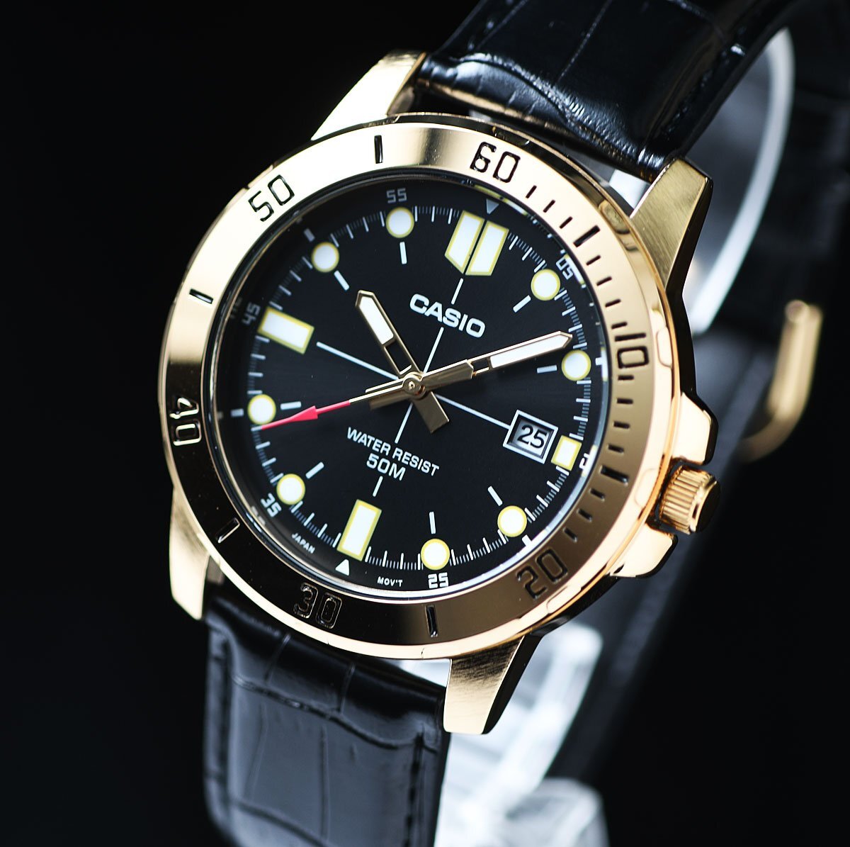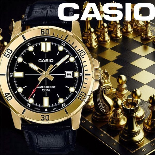 逆輸入カシオ 新品1円 視認性高くシンプルで飽きがこない ゴールド&ブラックメタリック 50m防水 腕時計 CASIO メンズ 日本未発売