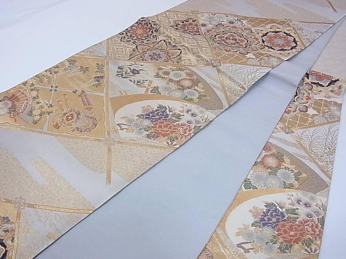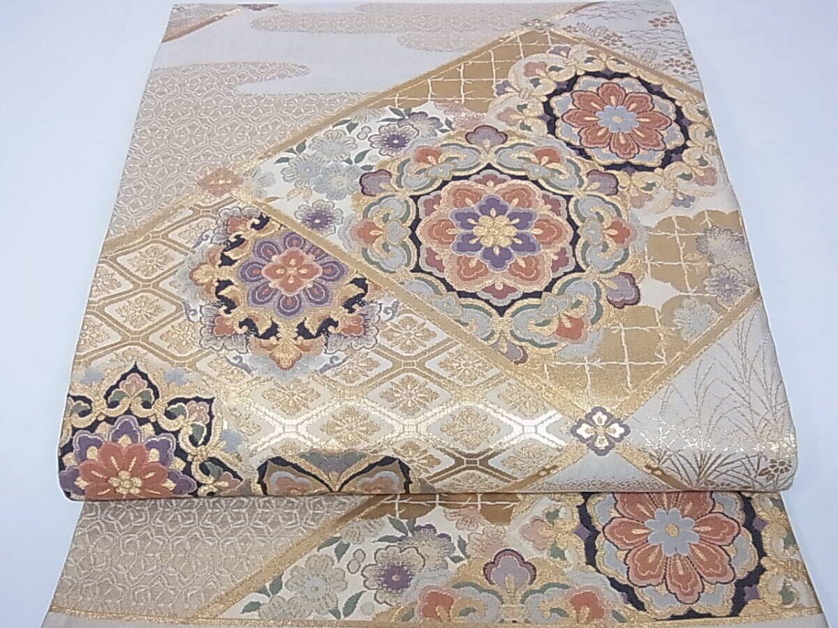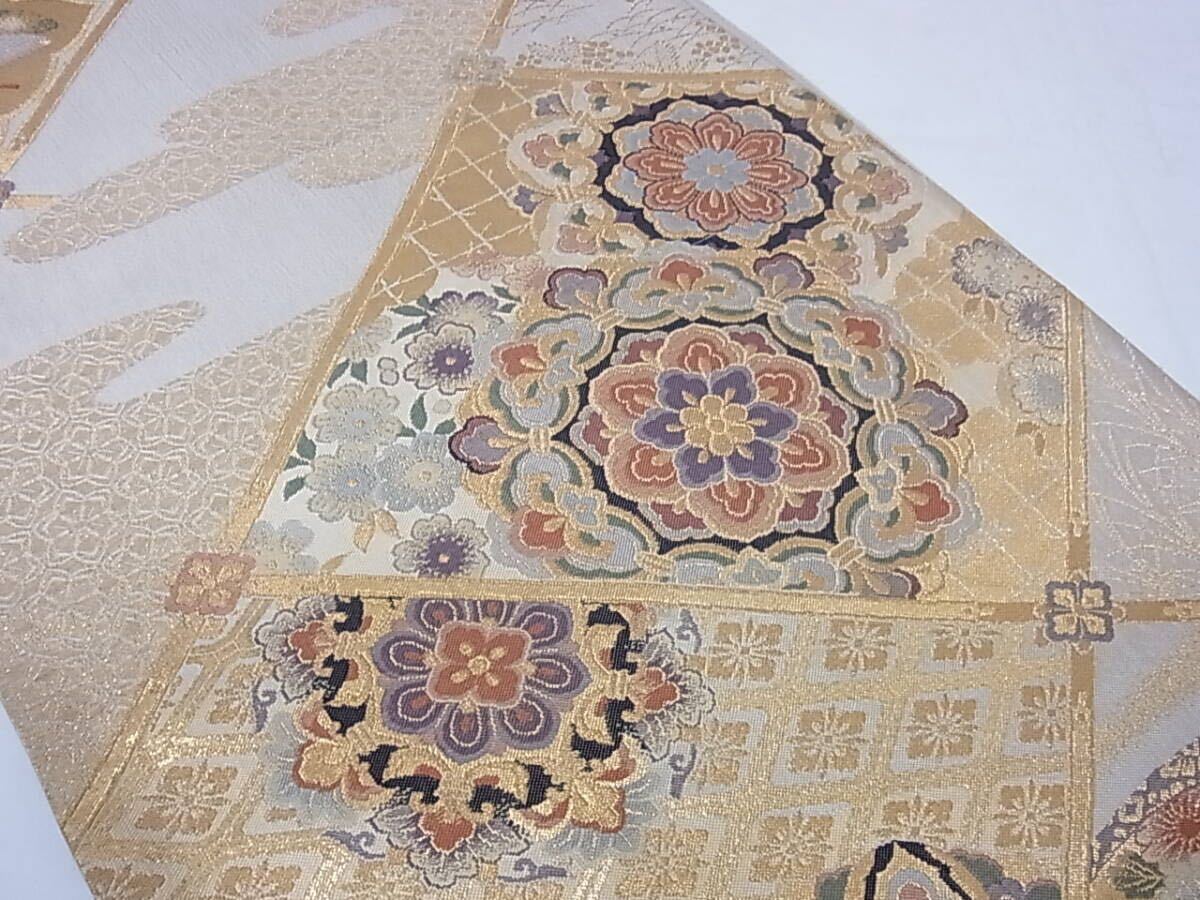 ★きもの結★【紹巴】六通柄袋帯 優雅菱取華文 金糸 正絹★sb151