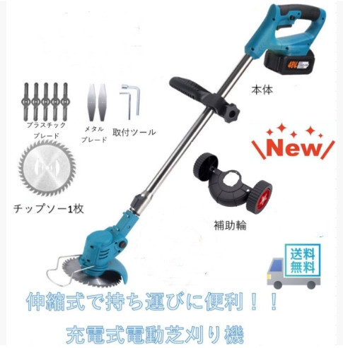 送料無料 草刈り機 充電式 草刈機 電動草刈機 18Vバッテリー 替刃8枚付 21V コードレス 多機能 電動刈払機 伸縮式 3種類替刃 軽量 芝刈り