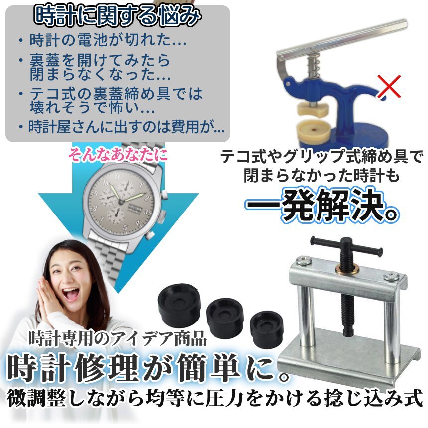 | 送料無料!!! 送料及び下記のご案内をご確認の上、ご入札お願い致します。 離島地域を除く九州、四国、本州まで送料無料。 ※北海道は+1000円、離島地域及び沖縄県は+3000円にて承ります。(発送前に加算) ※画像内にカラー及びサイズ等の選択が可能と記載がある場合がございますが、 お届けする物はタイトルまたは商品説明文に記載の物です。 ★※注文後のカラー変更や異なるカラー・サイズ指定等は一切承っておりません。 ※★※仕様(ロゴデザイン/ロゴ有無等も含む)は予告なく変更する場合があります。 ※多少の汚れや小傷がある場合がございますがご了承ください。 梱包は簡易包装ですので、箱の角落ち等はご了承願います。 【商品説明】 \自宅で時計を修理&電池交換が可能に♪/ 腕時計用台座式裏蓋締め具SET。 テコ式やハンドル型の締め具では裏蓋が閉まらない時計も◎ 台座式なら簡単&安全に裏蓋が閉められます。 上部のハンドルを捻り、徐々に力を加えられます。 作業前に時計本体と裏蓋のセンターをしっかりと確認することがPOINT! 台座ベース(コマ)はサイズ別でご用意しましたので様々な時計に対応◎ ========= 【商品仕様】 商品名:腕時計用台座式裏蓋閉め具 パッケージ内容:合計11点セット [注意事項] ※汎用タイプですが時計の構造により使用が難しい場合がございます。 ※モニターにより色合いが若干前後する場合がございます。 ※輸入品ですので多少の臭いやスレ傷、汚れはご了承ください。 ※当て布は必ずご用意/ご使用下さい。 ※仕様やデザイン、パッケージ等は予告なく変更される場合がございます。 ========= ※詳細は画像にてご確認ください ![]() ![]() ![]() ![]() ![]() ![]() ![]() |