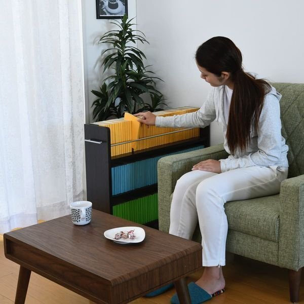 | 【カラー】 ダークブラウン、ナチュラル、ホワイト 【サイズ】 <外寸> 幅19.5×奥行78.5×高さ65.5cm/個 <内寸> オープン部:幅72×奥行17.5×高さ39cm cm 上部オープン部:幅72×奥行15×高さ16.5cmcm 【材質】 本体:プリント紙化粧合板 【収納数(1個あたり)】 文庫本:(約)144冊 コミック:(約)144冊 CD:(約)216枚 DVD:(約)96枚 Blue-ray:(約)165枚 【耐荷重】 固定棚:(約)10kg以下 可動棚:(約)7kg以下 【生産国】 インドネシア 【梱包】 サイズ:77.5×48×13.5cm、重量:16.1kg 【その他】 ・キャスター5個(うちストッパー付き2個)/個 ・背面化粧有り 【組み立て品】 お客様による組み立てが必要です。 |