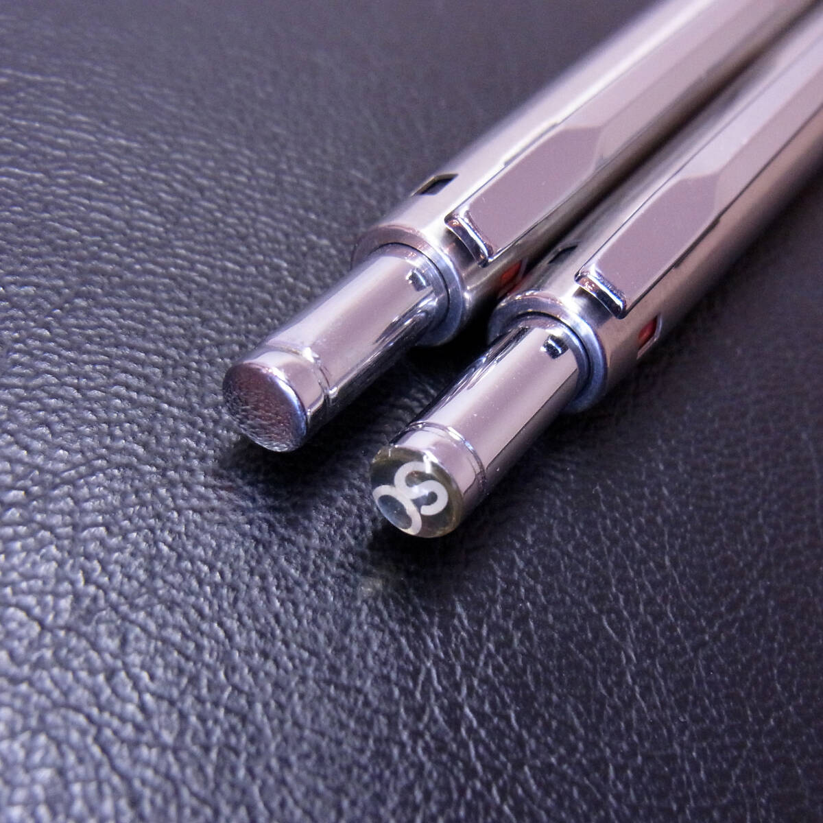 片方のノック部先端に記念文字あり。