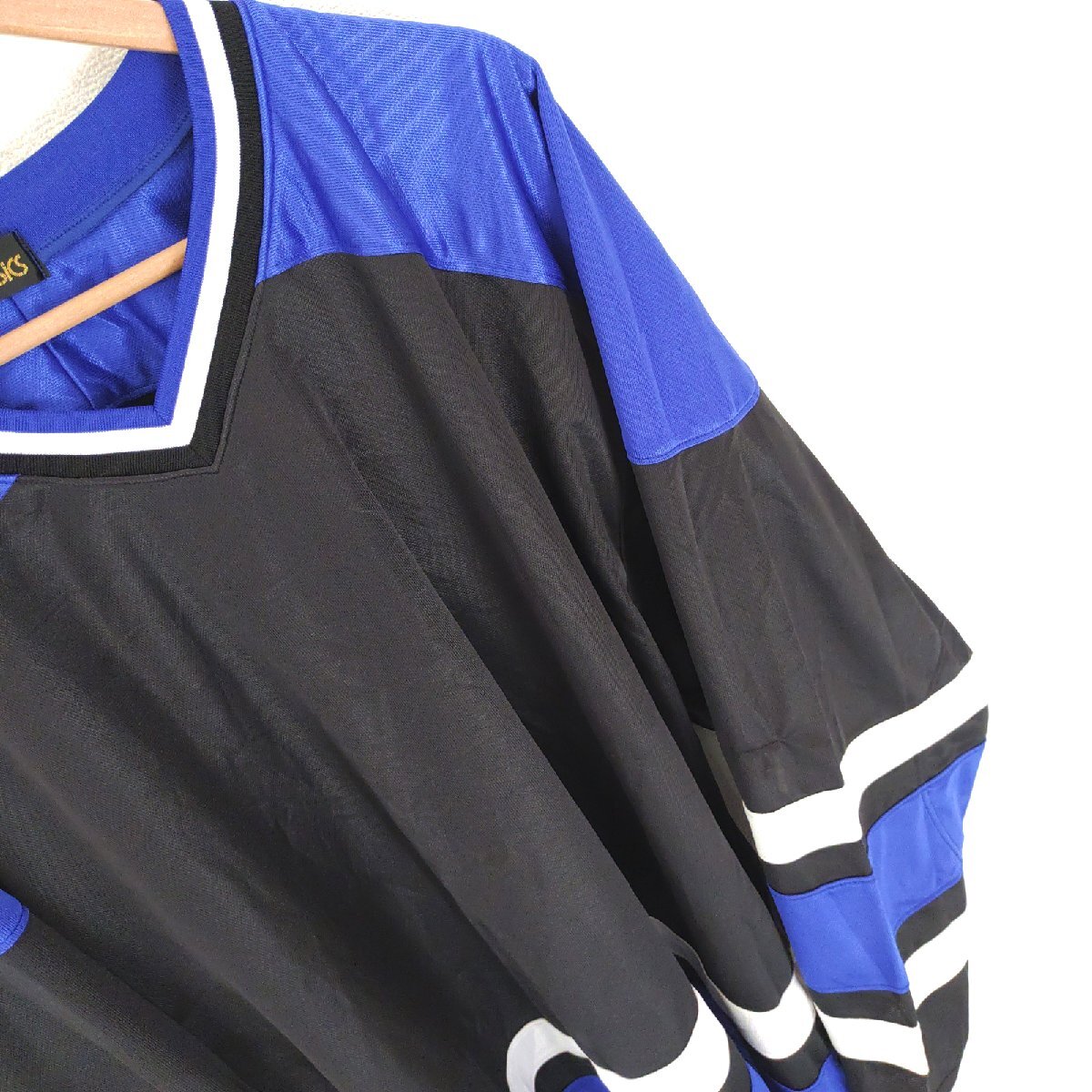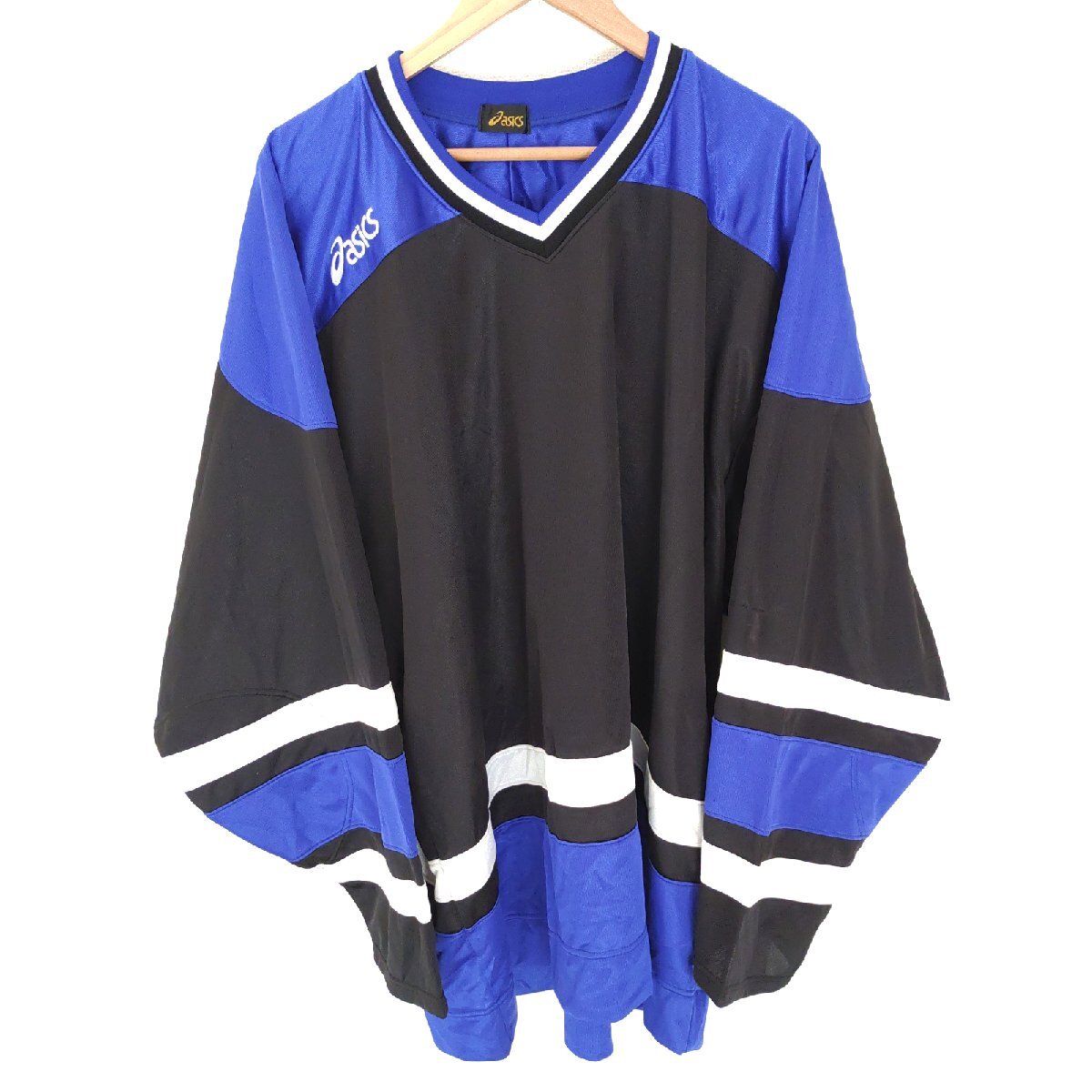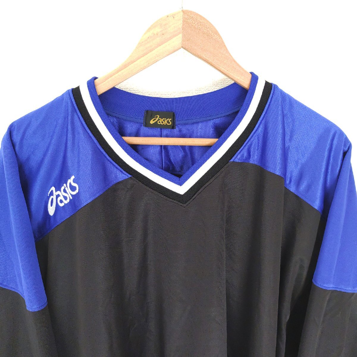 (^w^)b 日本製 asics アシックス 長袖 Vネック ゲームシャツ プルオーバー トップス トレーニング スポーツ ストリート 黒×紺 O O16236DD