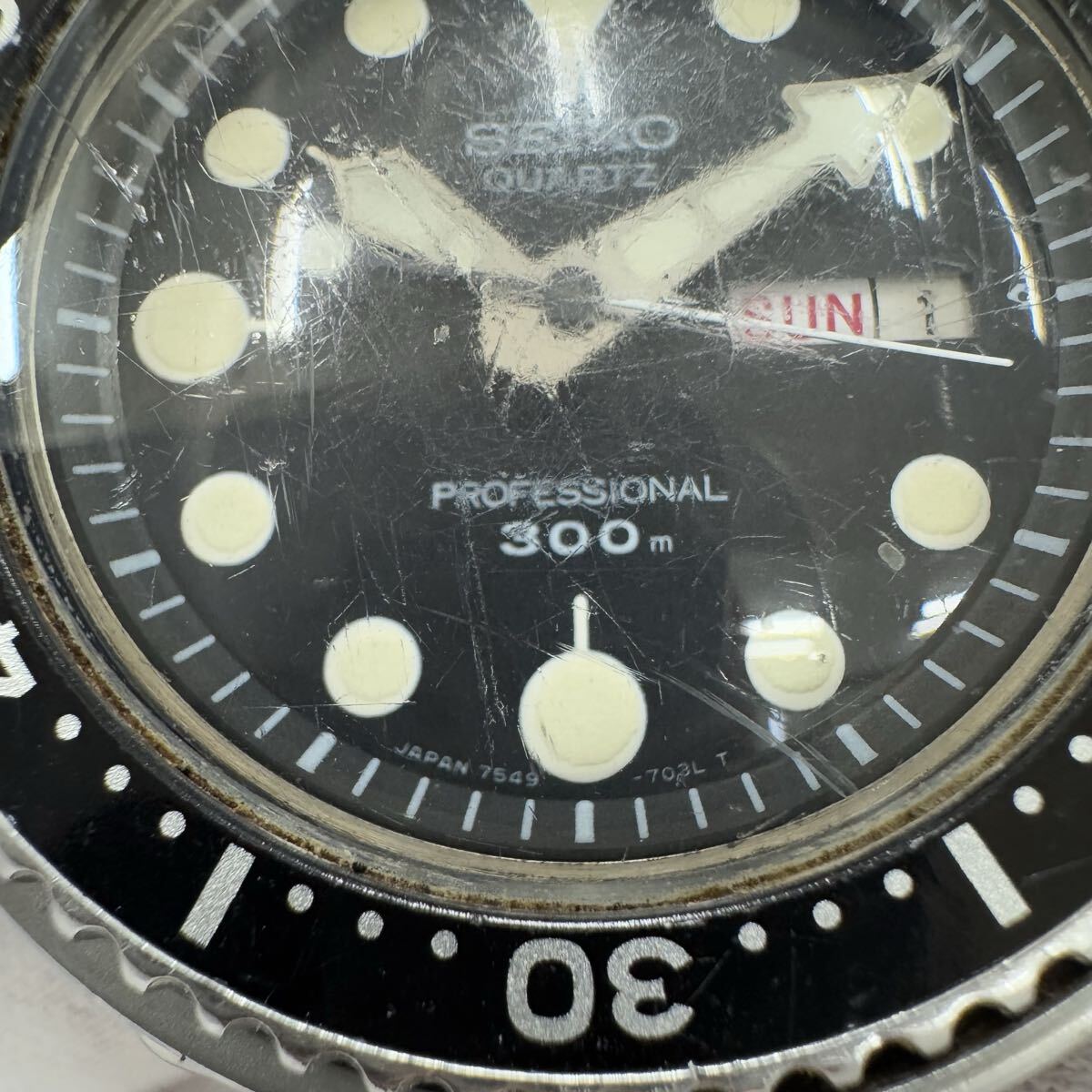 ★SEIKO セイコー プロフェッショナル ダイバー 300M デイデイト メンズ 腕時計 7549-7010 クォーツ ジャンク 黒文字盤 ケースのみ OB1522