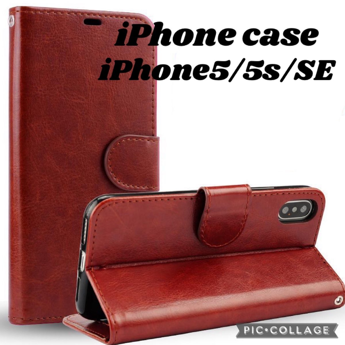 【iPhoneSE(第1世代)/5s/5:ブラウン】iPhone ケース 手帳型 液晶強化ガラスフィルム 2点 セット 保護フィルム 手帳 スマホケース A58