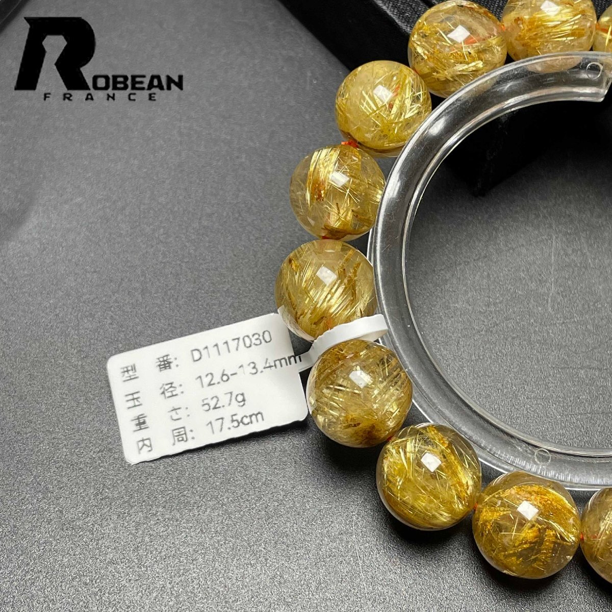 貴重 EU製 定価59万円★ROBEAN・極!極満針ルチルクォーツ★ブレスレット パワーストーン 天然石 綺麗 金運 お守り 12.6-13.4mm D1117030