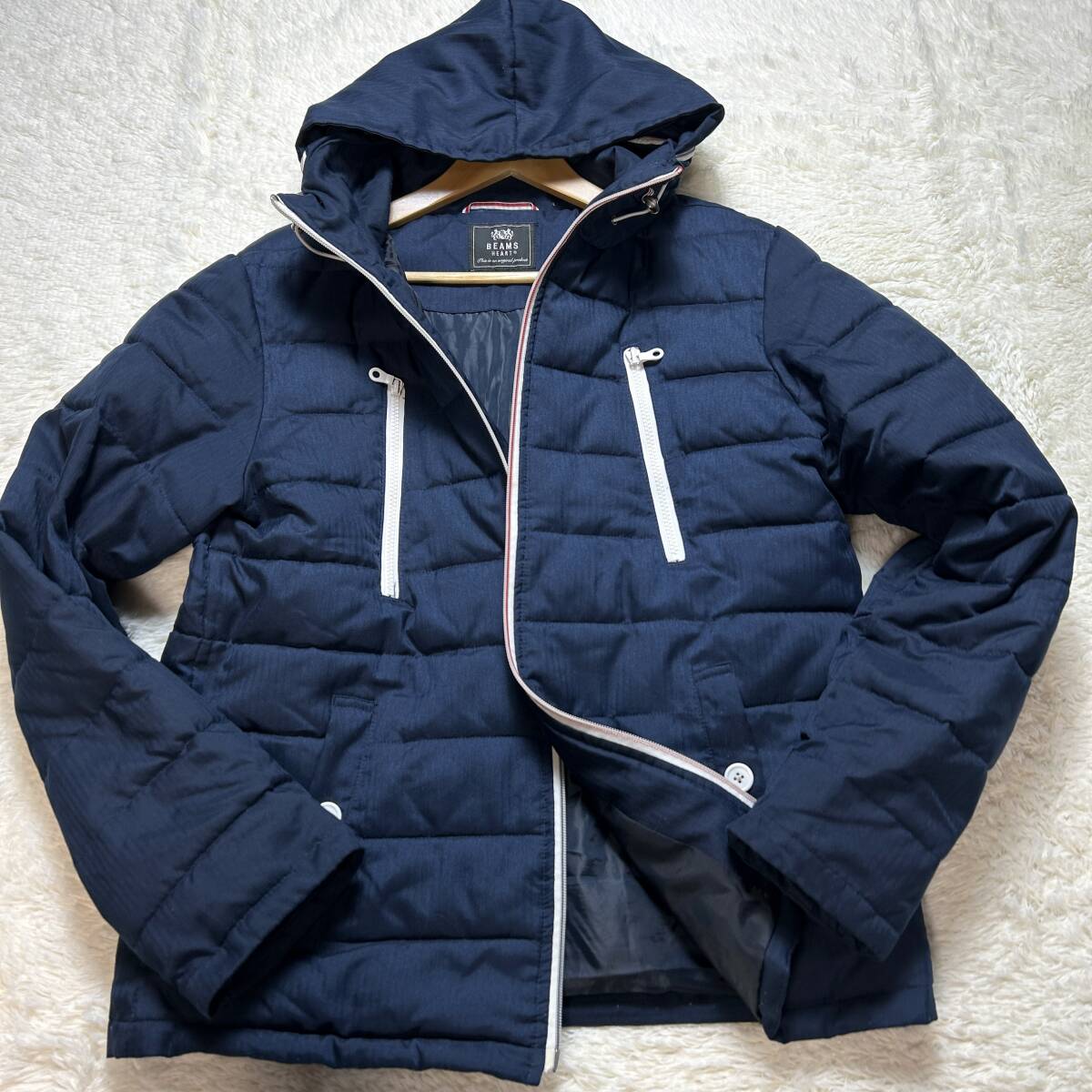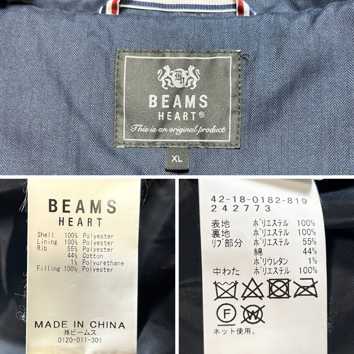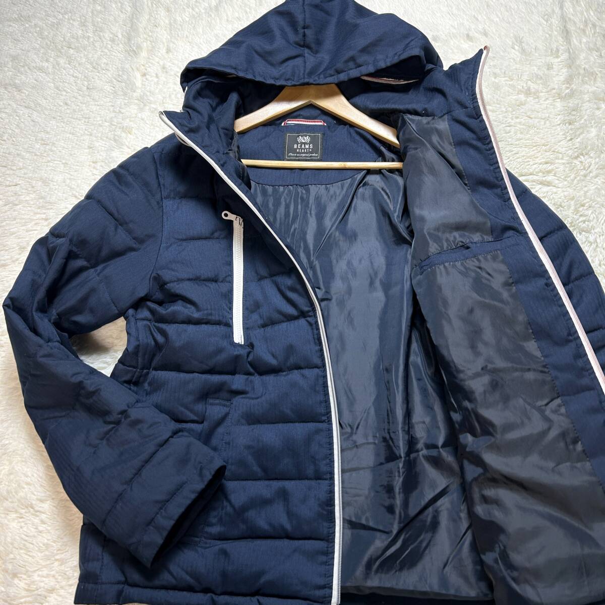 美品/XLサイズ◎BEAMS HEART ビームスハート ダウンジャケット コート フーディー 2way トリコロール ネイビー 紺 カジュアル アウター