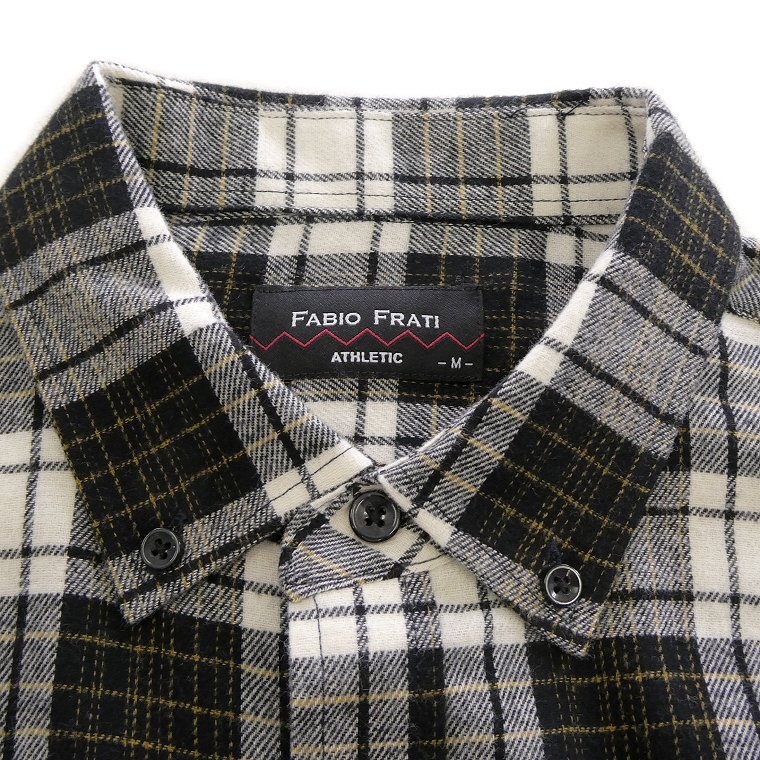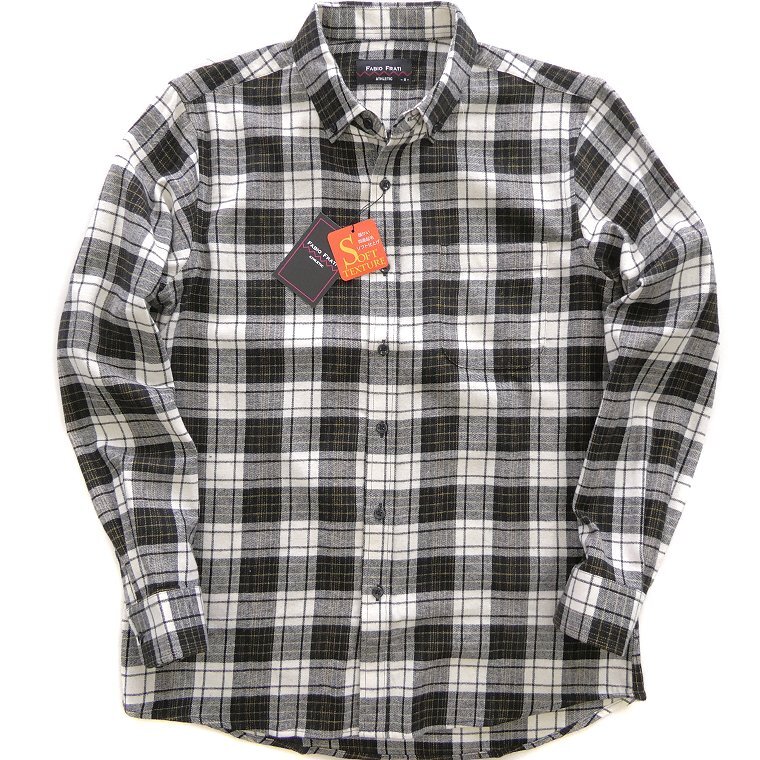 【Fabio Frati(ファビオ・フラーティ)】 イタリア人デザイナー、ファビオ・フラーティとのコラボレーションで誕生したブランド。イタリアンフィーリングに溢れる細部にまで渡る物作りの技術や感性が、旬のルックスに。こだわりのある大人の男性たちに向けたカジュアルウェアブランド、日本人男性の体形に似合うよう設計されているのも好印象です。 両面起毛ビエラ生地を使用した秋口~春先まで着用いただけるフランネルシャツ。 着用時のチクチク感が無く、ソフトな風合いで滑らかな肌触りで着心地の良い仕上がりです。 襟元はボタンダウン、左胸ポケット・センターボックスプリーツ、カジュアルスタイルにぴったりな一枚です。 |