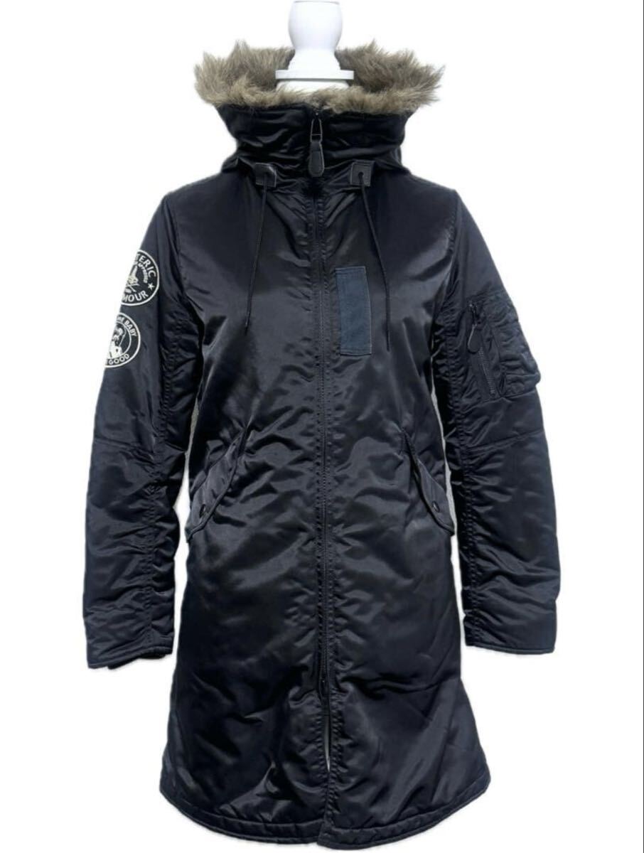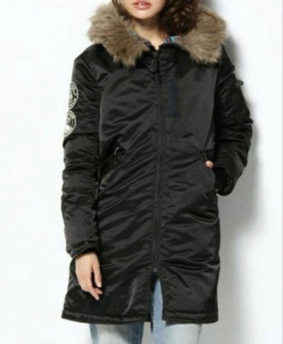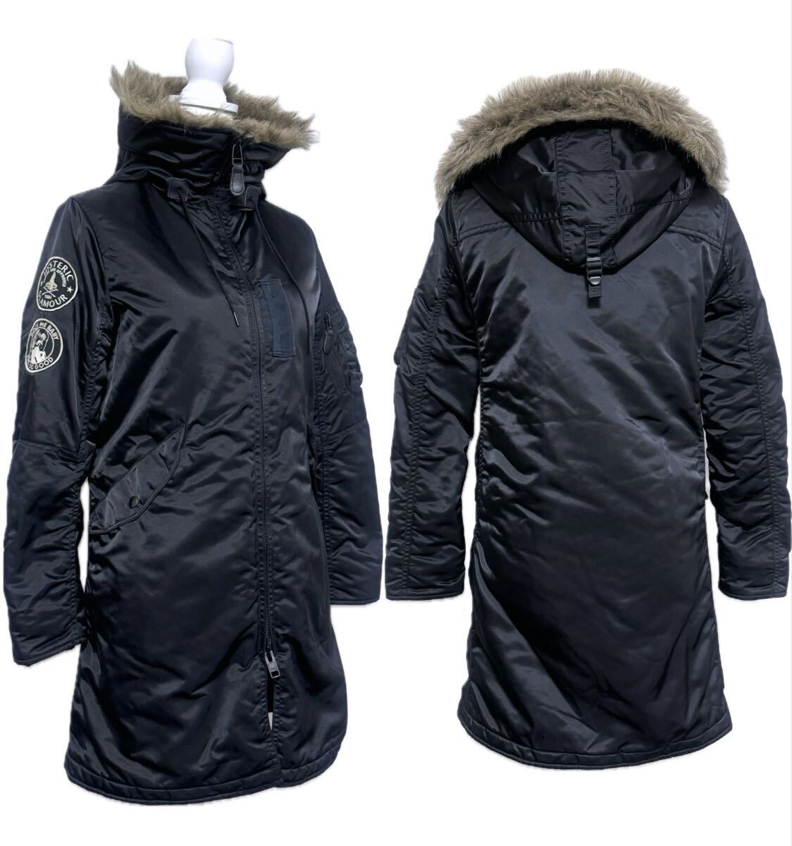 ヒスガールワッペンミリタリージャケットフライトジャケットレディースロングコートN3Bプリマロフトファー付きフードPRIMALOFTモッズコート