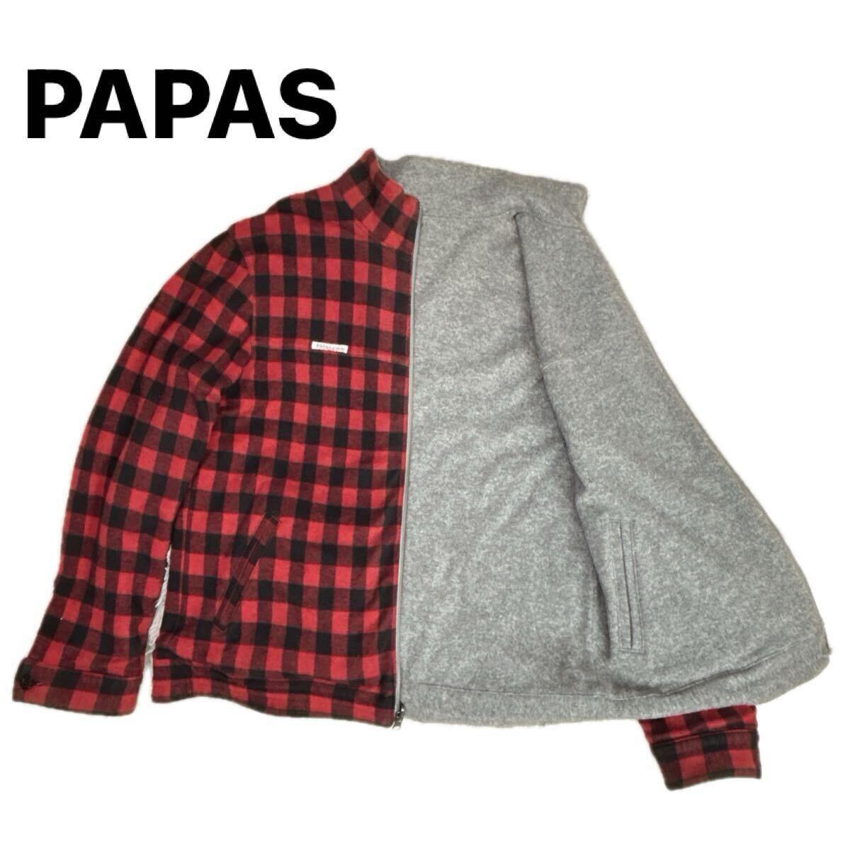 【極美品 Lサイズ】パパス PAPAS リバーシブル ブルゾン ジャケット スイングトップ Lサイズ チェック レッド 赤 日本製 刺繍ロゴ