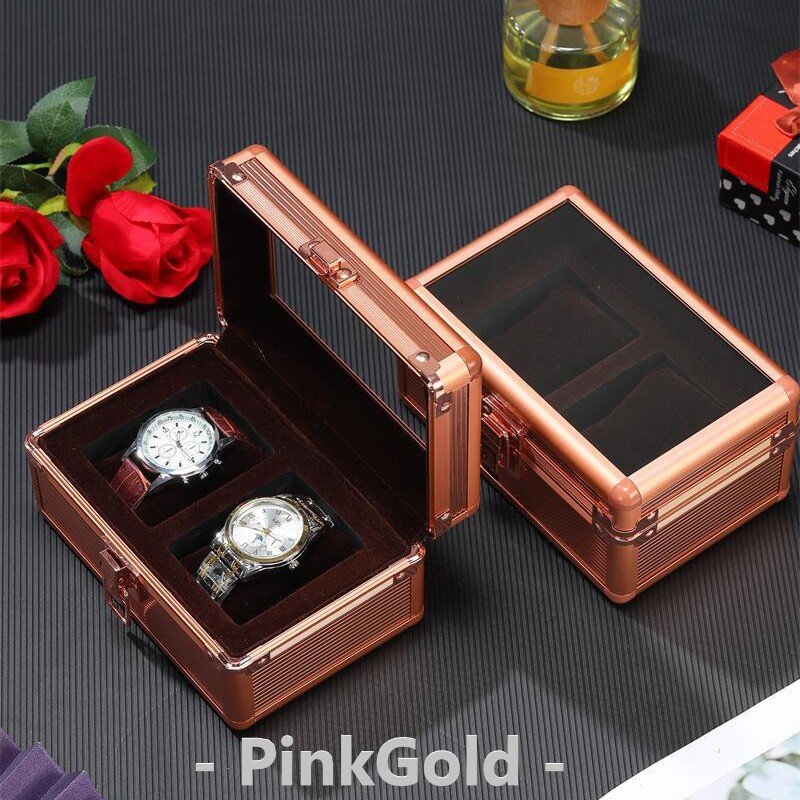 腕時計ケース ピンクゴールド アルミ 2本 収納 ケース プレゼント 収納ケース 高級 腕時計 インテリア コレクション 腕時計ボックス