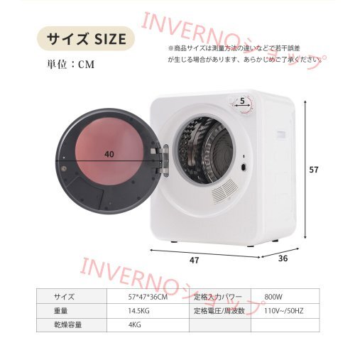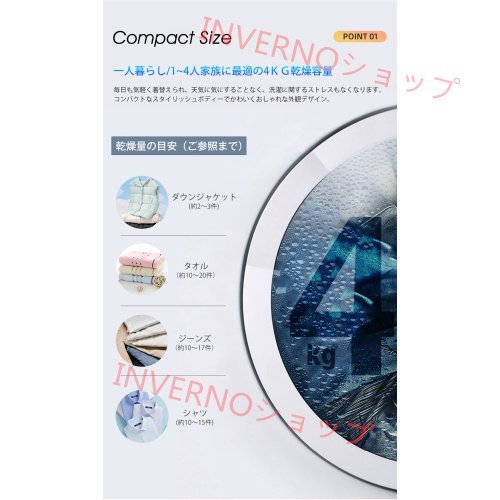 小型衣類乾燥機 衣類乾燥機 小型 乾燥機 衣類 4kg ミニ コンパクト 自動モード ドラム ダイヤル式 高温除菌 家庭用 一人暮らし ウール 1人