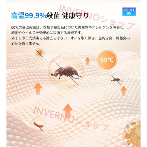 • 【高温滅菌&部屋干し臭の抑制】除菌率99.9%。熱風で「モラクセラ菌」の発育を抑制し、嫌な匂いもなくなる