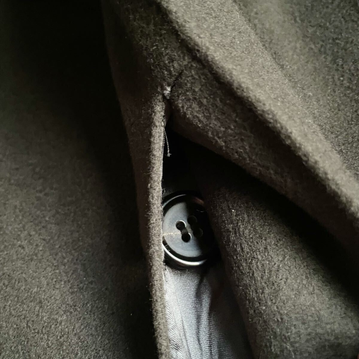 落ち着いたオリーブ系の色味が上品で、比翼仕立てのミニマルなデザインがより一層エレガントな印象を引き立てます。