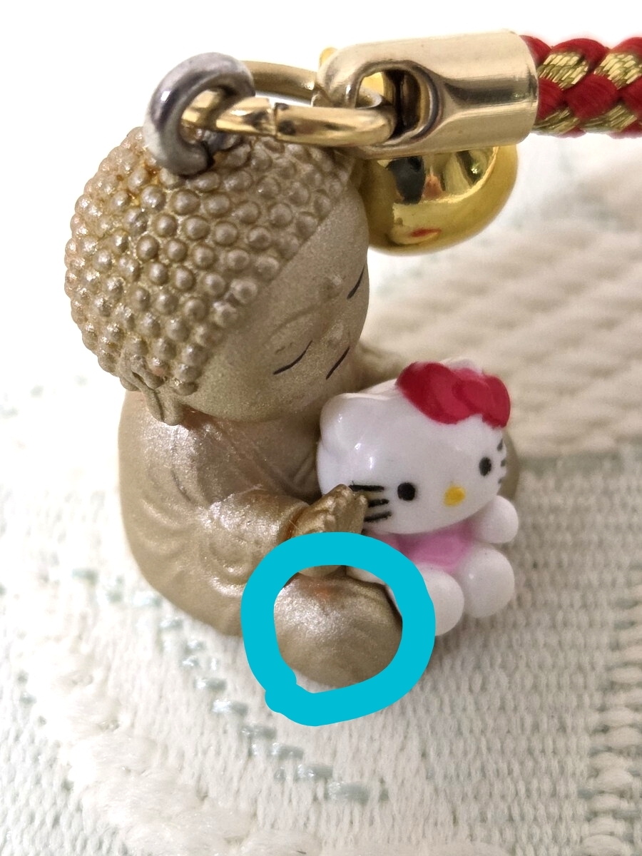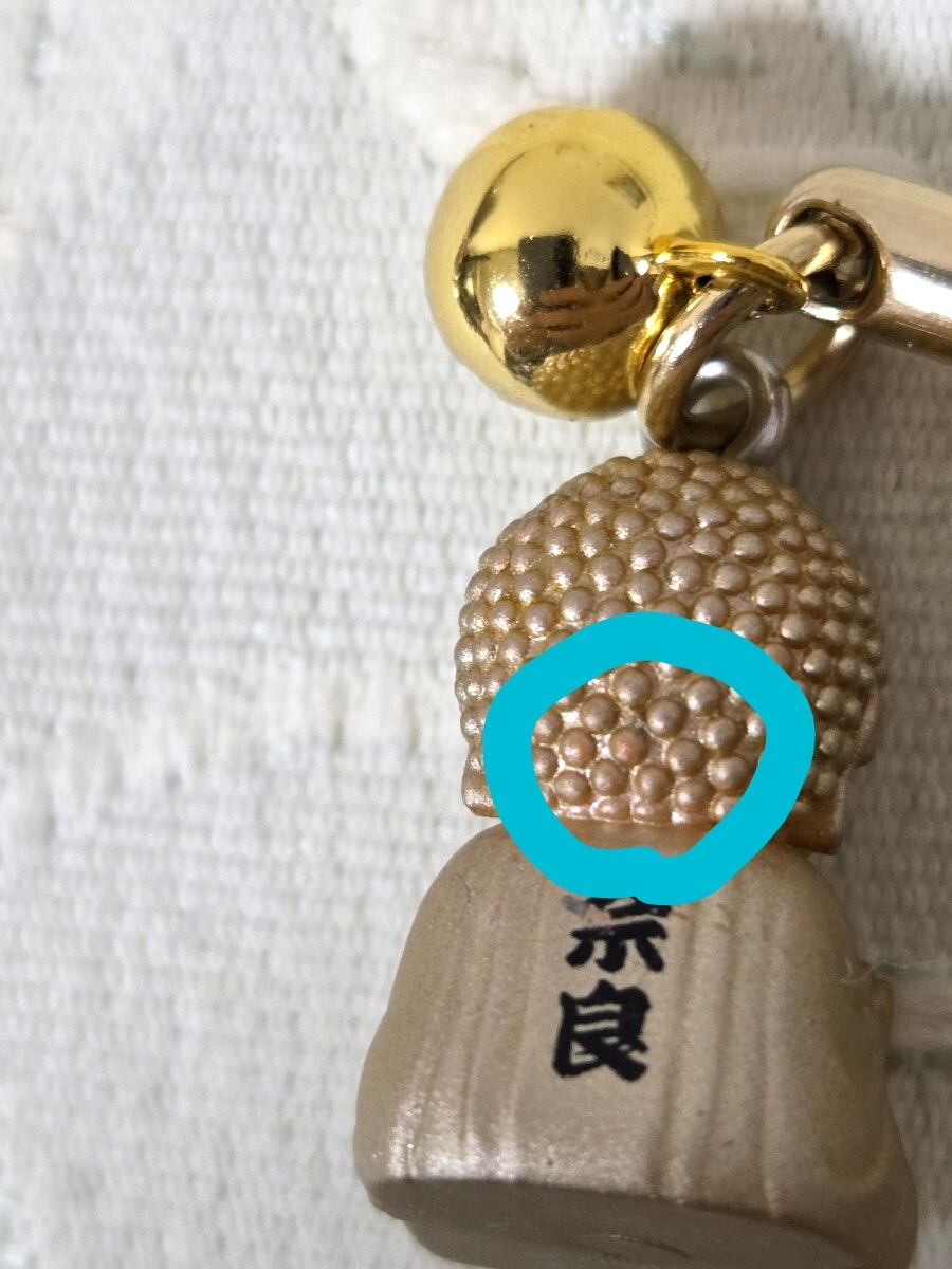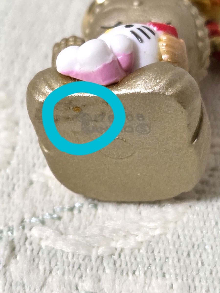 未使用ですが経年劣化に伴い、金色の塗装が剥げやすいのか部分的に金色が剥がれている箇所がいくつかございます。奈良の奈の部分の欠けございます。キティちゃんは大丈夫です。