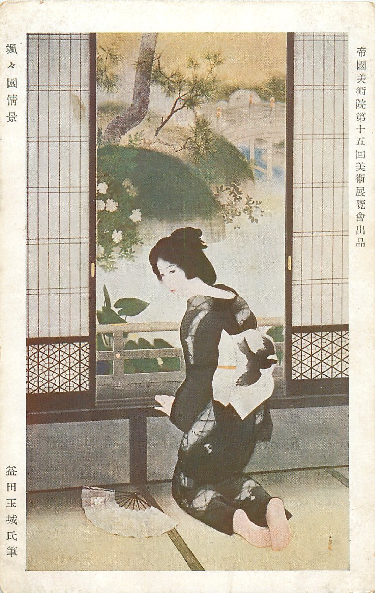 b-4380【絵葉書】◆ 美術展覧会出品 颯々園情景 益田玉城
