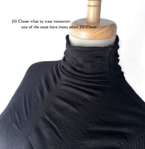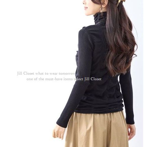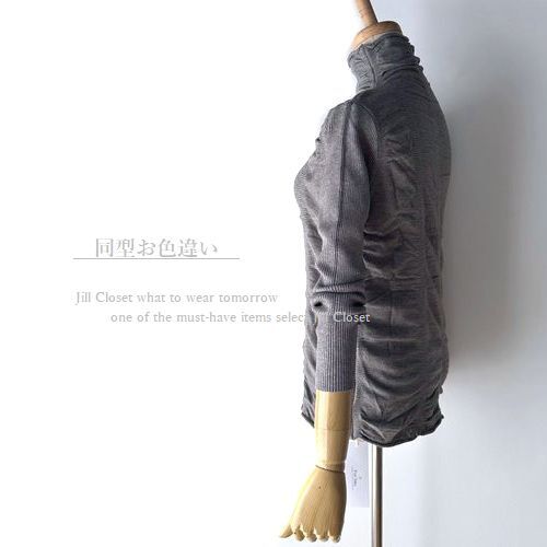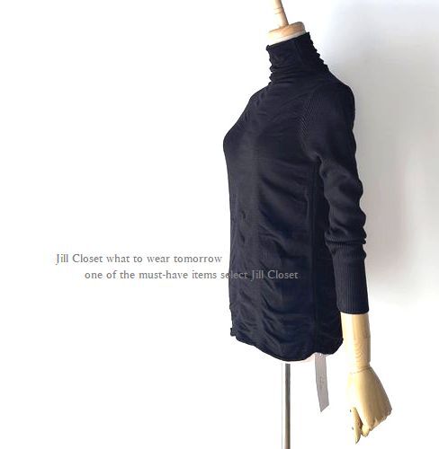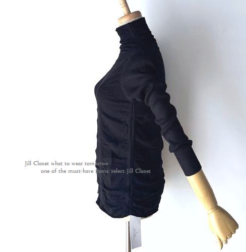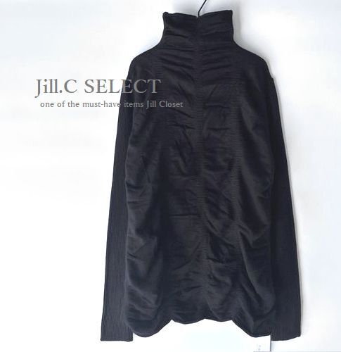新品【送料185円】万能♪伸縮性抜群 シャーリングストレッチニット×リブ*緩やかハイネックdesign*通勤オフィス対応◎プルオーバー4197.bk