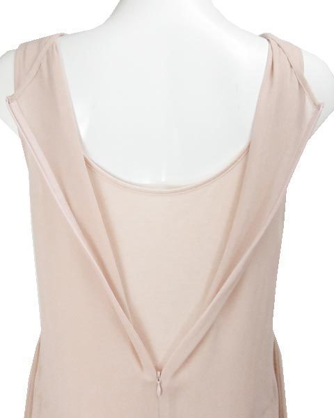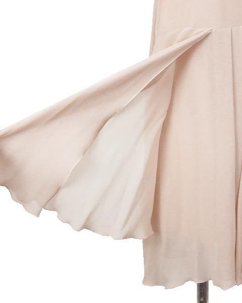 | 上品なくすみピンクのシルクシフォンのワンピース。エアリーなデザインで、見た目からわかる高級感があります。華やかさがあり、ちょっとしたパーティーシーンからお出かけスタイルまで、ご着用いただけます。素敵なワンピースです。 |