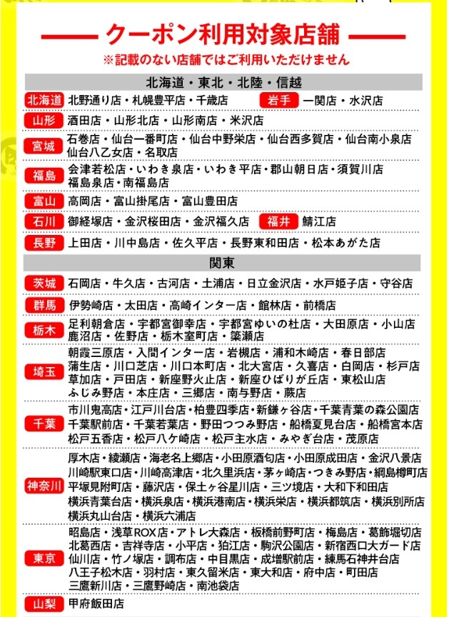 | ■本クーポンをご利用頂ける店舗が限定されておりますので、商品画像の2~3枚目をご参照ください(記載のない店舗ではご利用頂けません)。 |