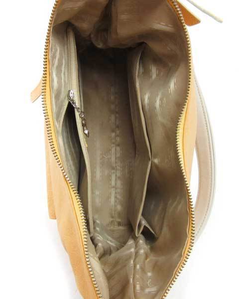 | 優しい黄色と白の上品なショルダーバッグ。柔らかい上質な革使いで、エレガントにお持ちいただけます。内側にはファスナーポケット、大小のスリットポケットがあります。外側にもファスナーポケットがありますので、使い勝手の良い便利なおつくりです。 |