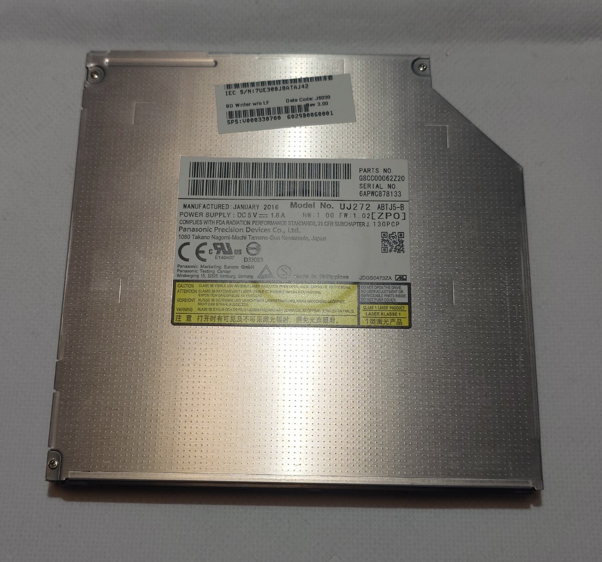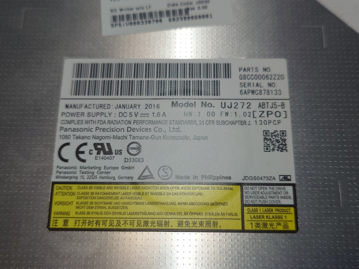 panasonic UJ272 BDXL対応 9.5mm厚 ウルトラスリム ブルーレイドライブとなります。Windows10で読込み、書込み、動作確認済みです。付属品はありません。