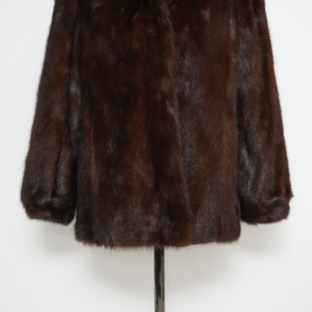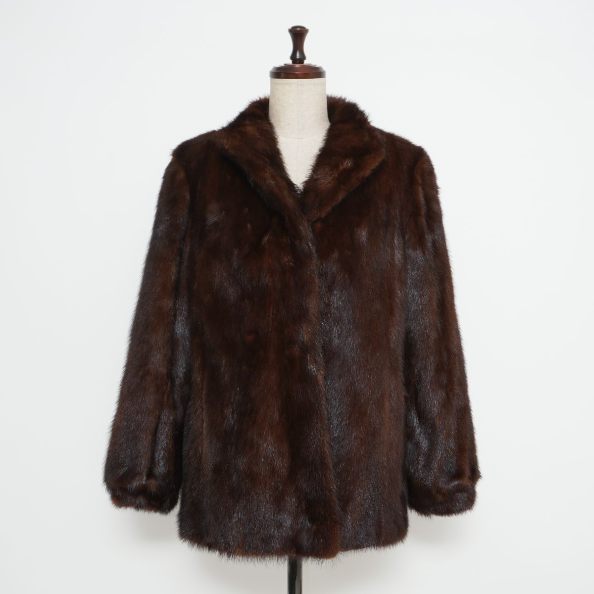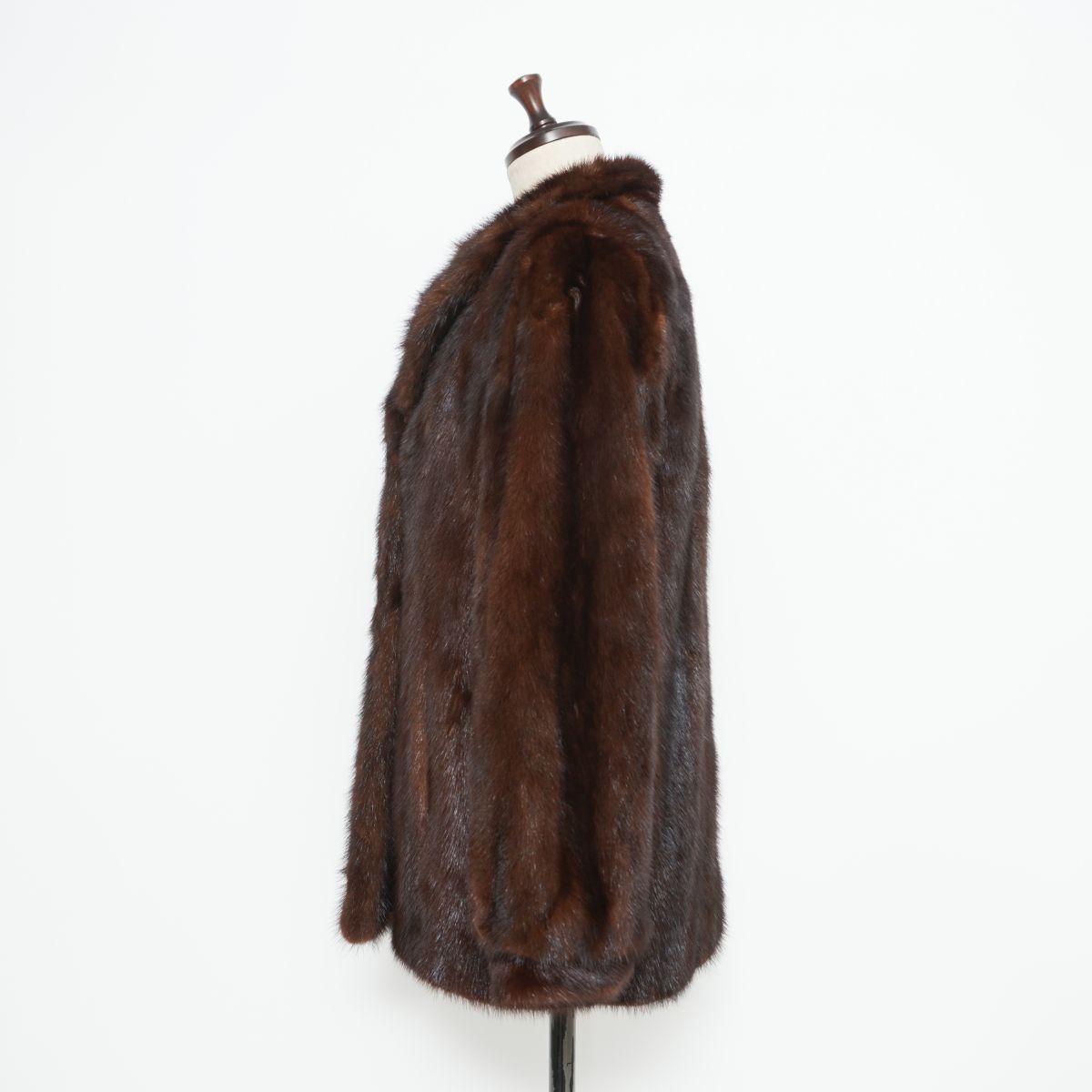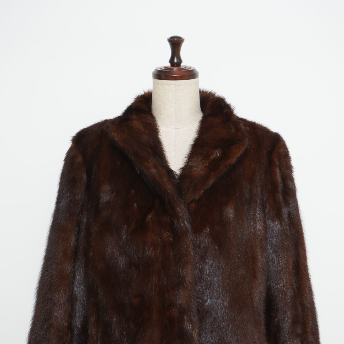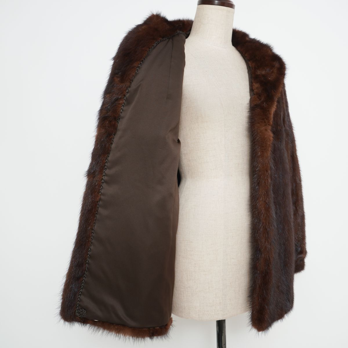 美品 リアルファーコート 毛皮 ジャケット ショールカラー ポケット付 レディース ブラウン 茶色 サイズ11*KD120