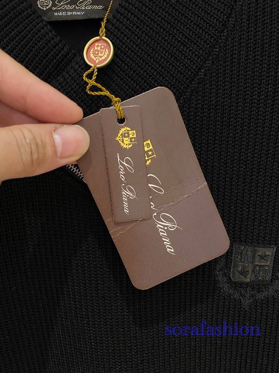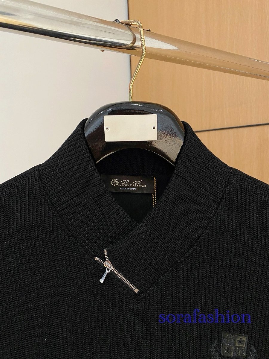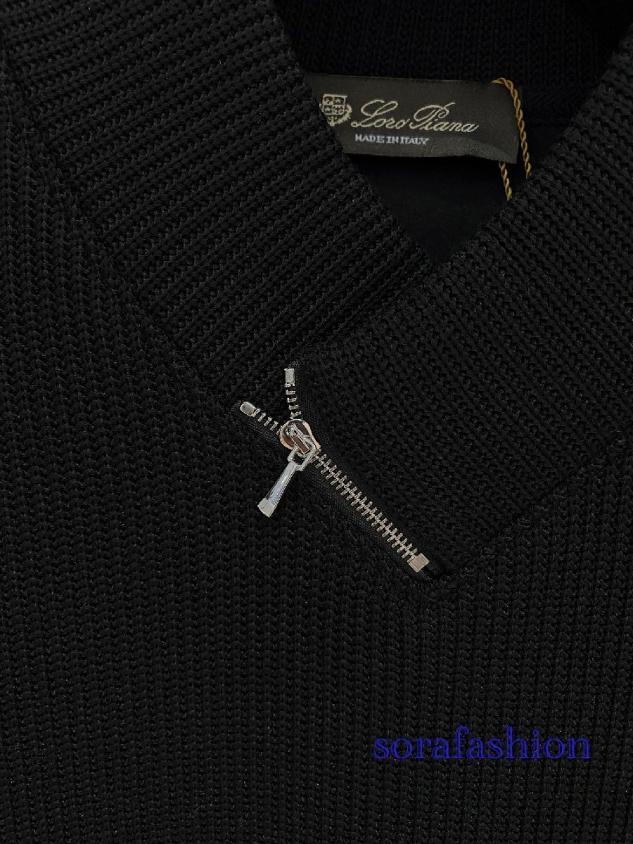 Loro Piana ロロピアーナ メンズニットプルオーバー スウェット パーカー ブラック 3XLサイズ トップス ファスナー付 長袖 V襟 秋物 紳士服