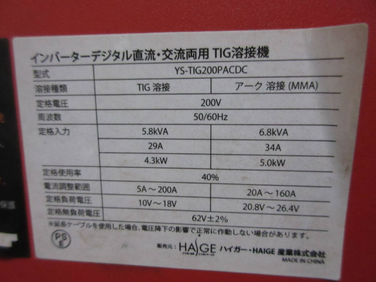 | YOTUKA 直流/交流両用 インバーターデジタル TIG溶接機 YS-TIG200PACDC | |