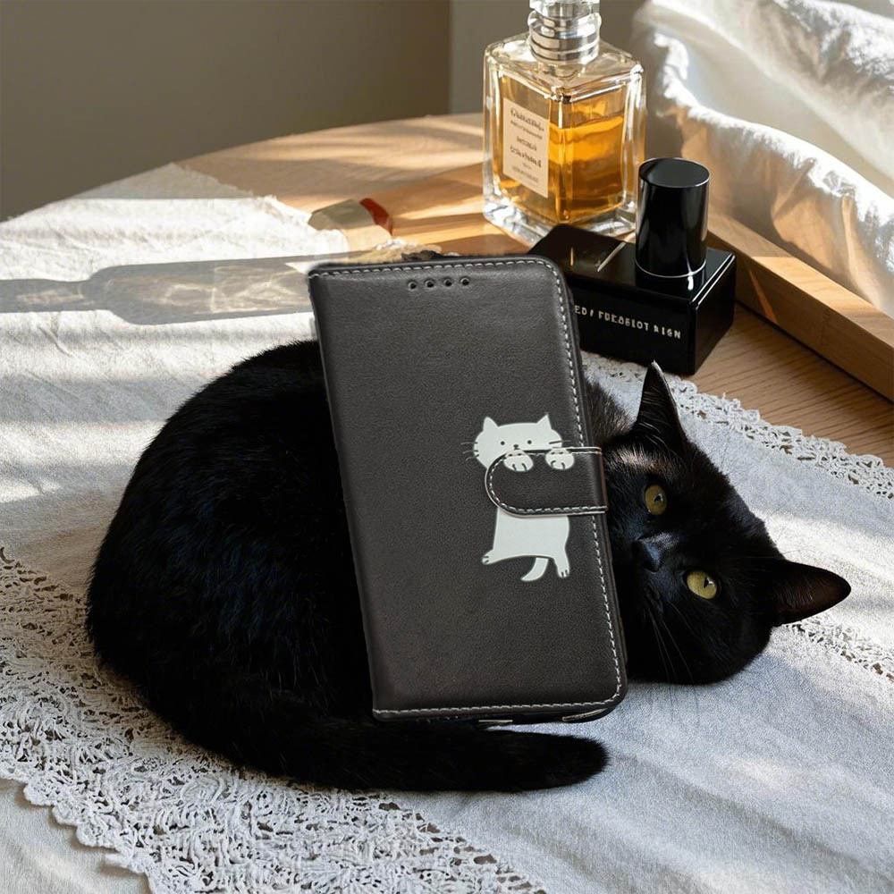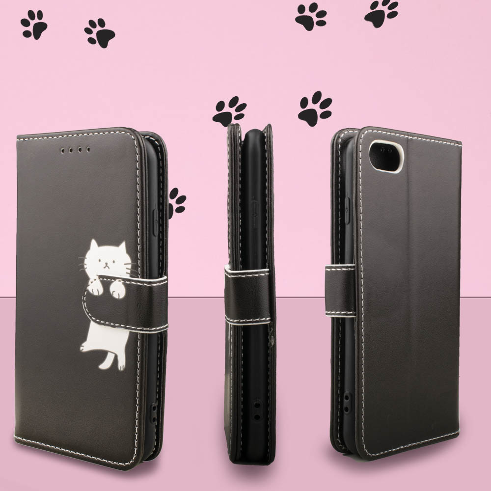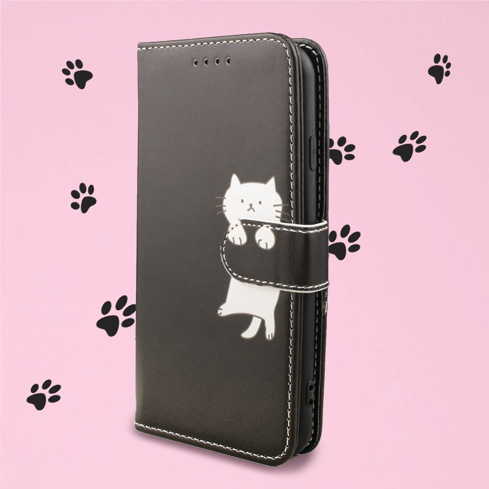 ベルトにぶら下がる猫がとってもキュートな手帳型ケース♪
