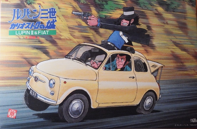 なつかしのアニメ名シーンプラモデル◆モンキー・パンチさん原作「ルパン三世 カリオストロの城」ルパンⅢ&フィアット 追跡 未組立品です