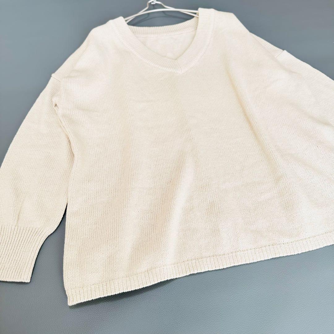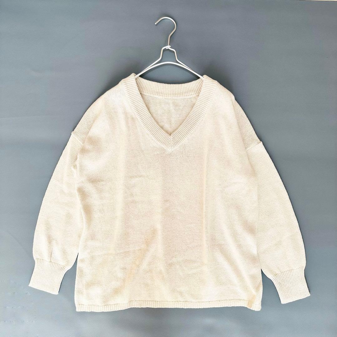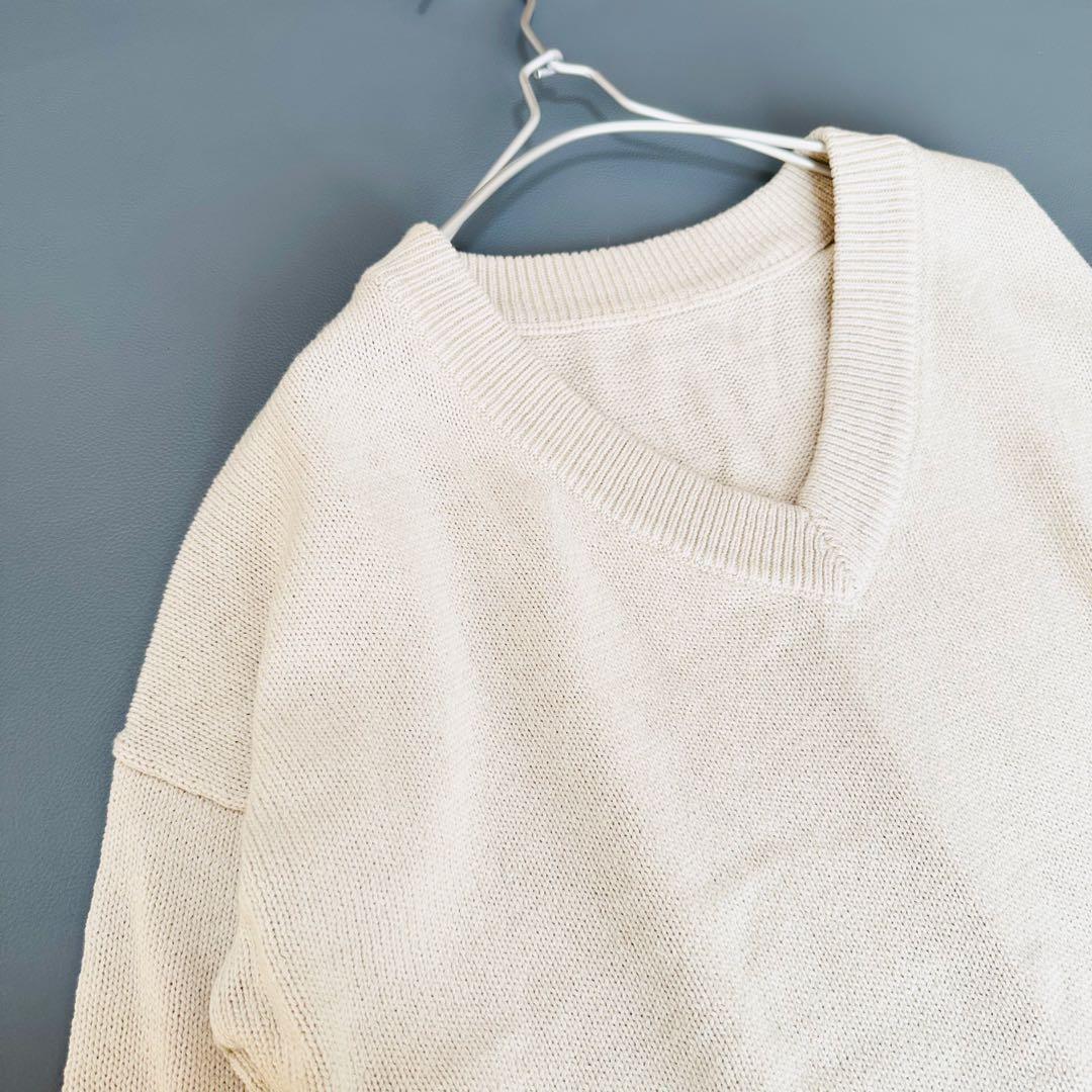 美品ミューズ ドゥーズィエムクラス カシミヤニット セーター 長袖 Vネック ベージュ MUSE de Deuxieme Classe