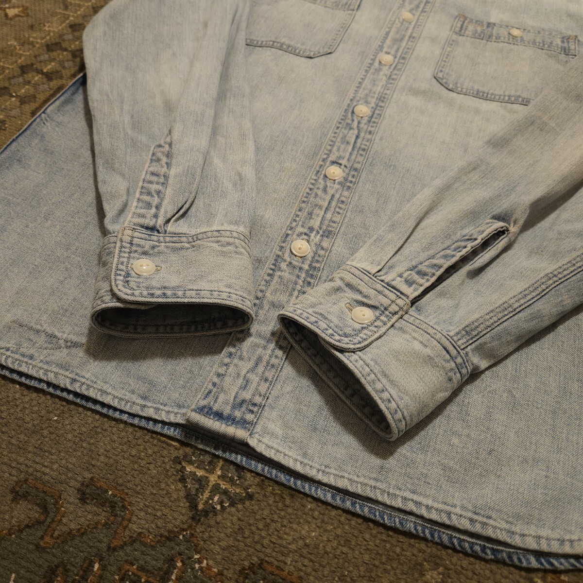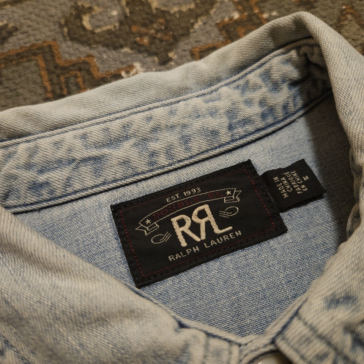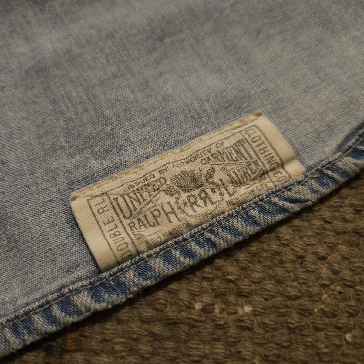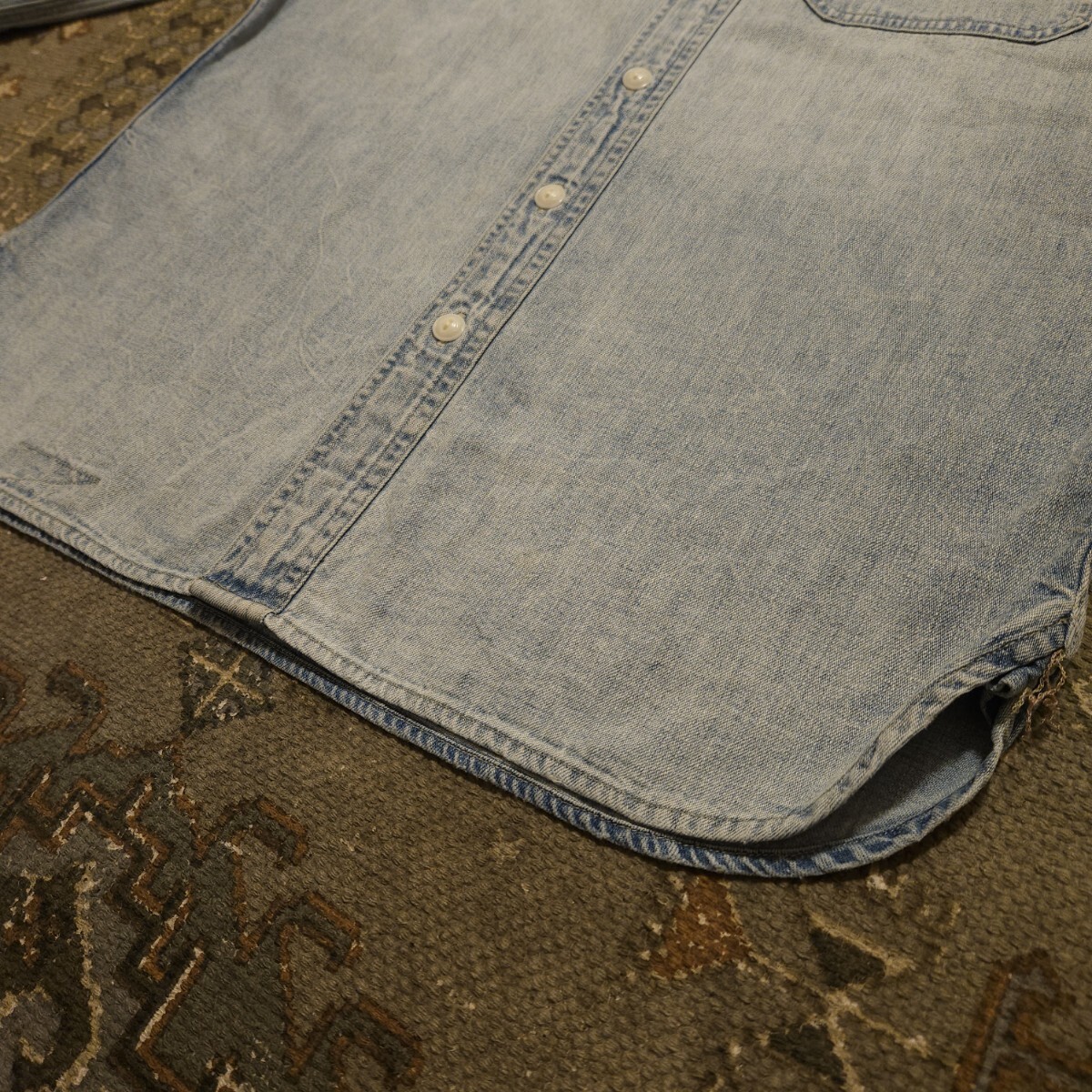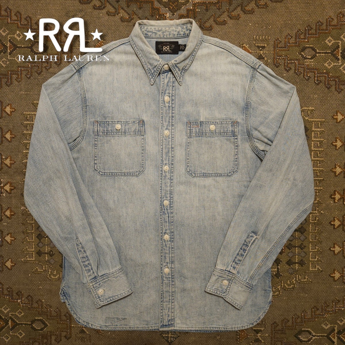 【傑作品】RRL INDIGO DENIM WORK SHIRT【M】インディゴ デニム ワークシャツ ディストレスト ベッカム着用 ビンテージ 猫目 RALPH LAUREN